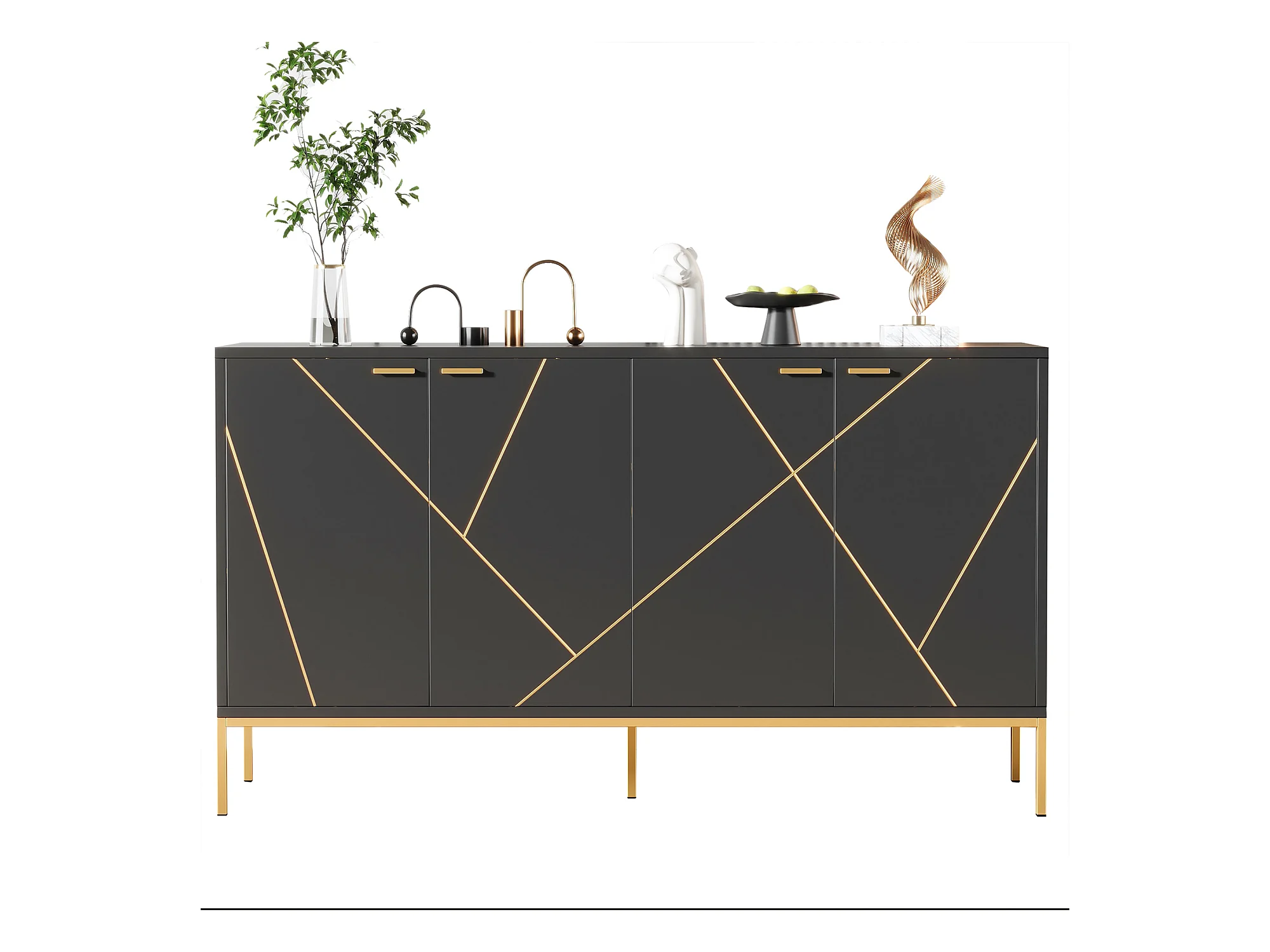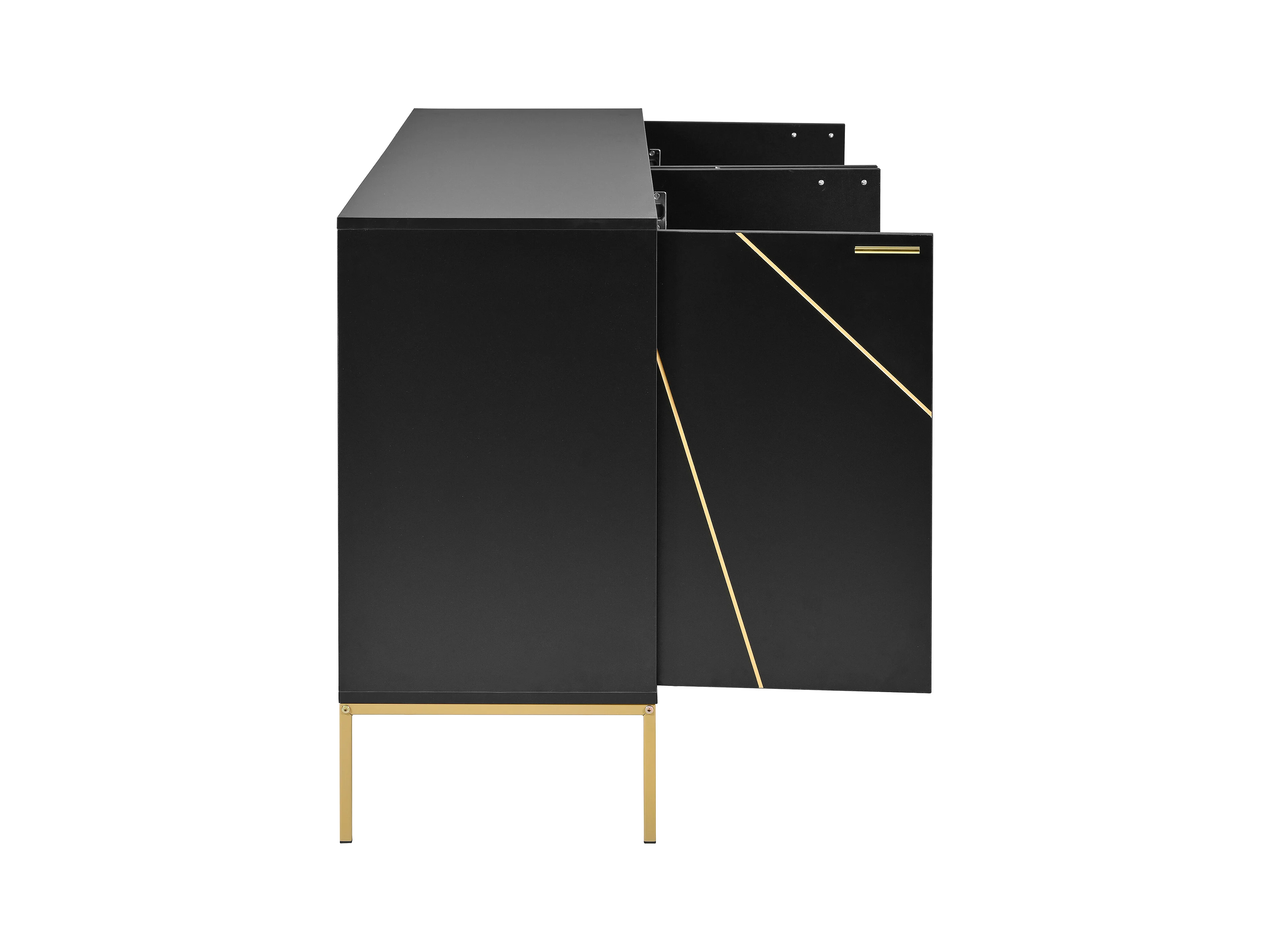 Buffet noir avec 4 portes rayées et séparateurs réglables, poignées dorées