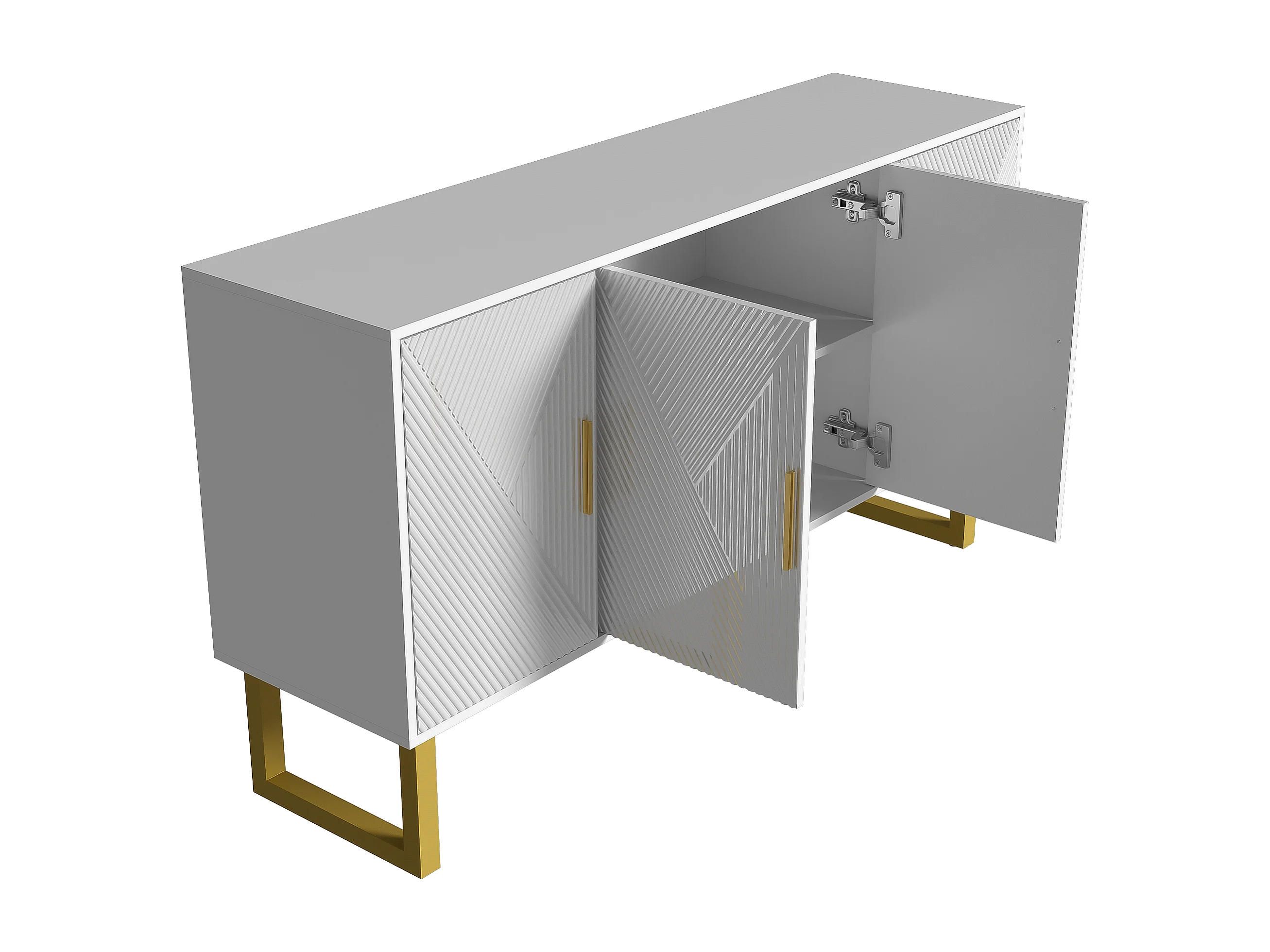 Buffet 150x40x82 cm avec cloisons réglables MDF et panneaux de particules en blanc pour salon et cuisine