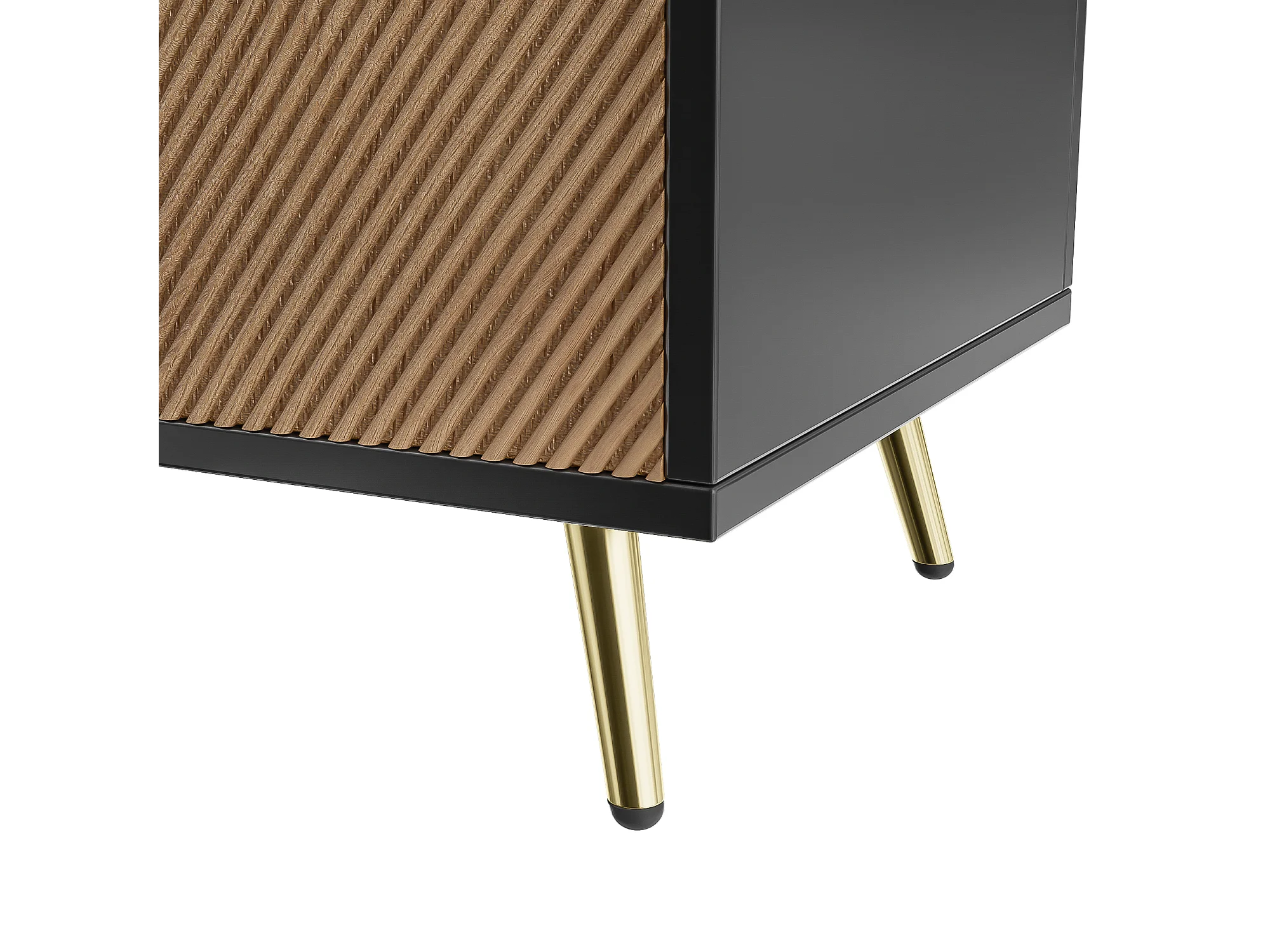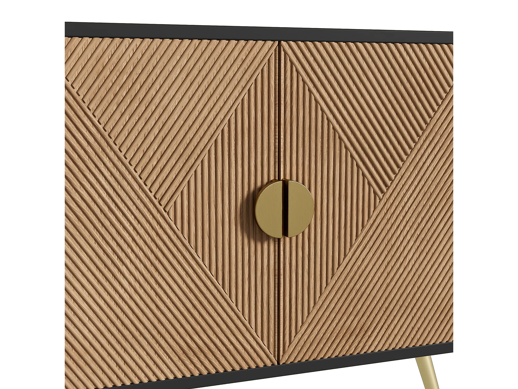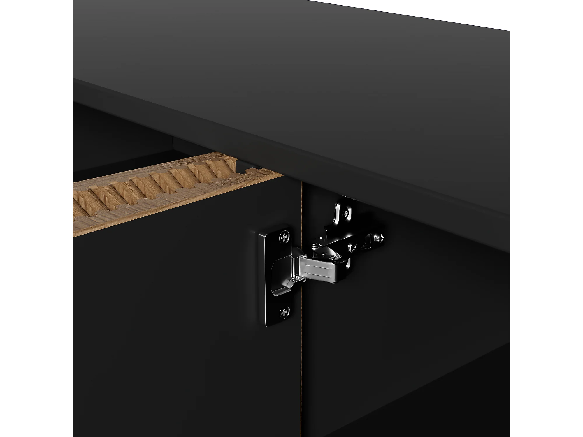 Buffet 160x40x75 cm avec casiers MDF et panneaux de particules noir et couleurs naturelles pour salon et cuisine