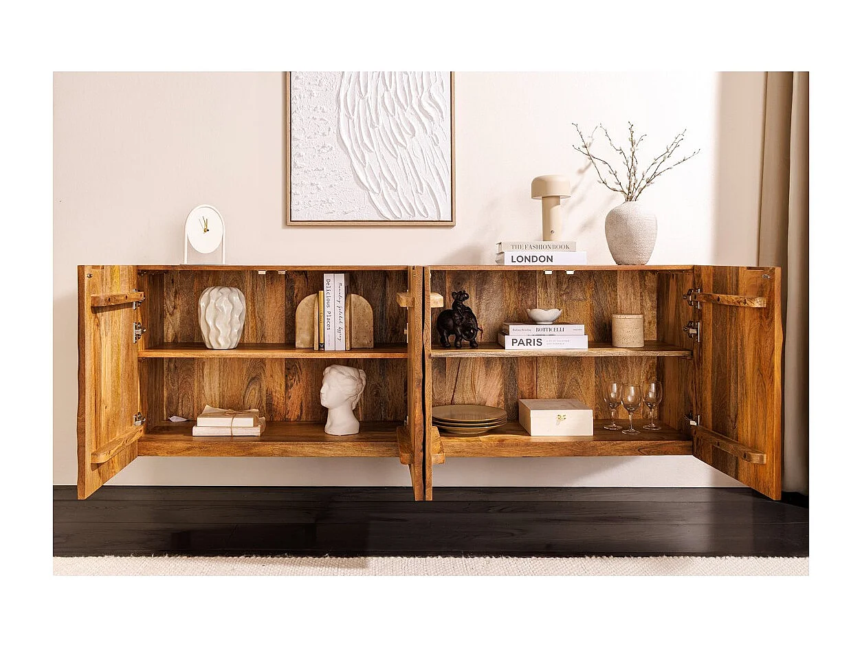Buffet 180 cm 4 portes bois sculpté naturel – Collection SILVA