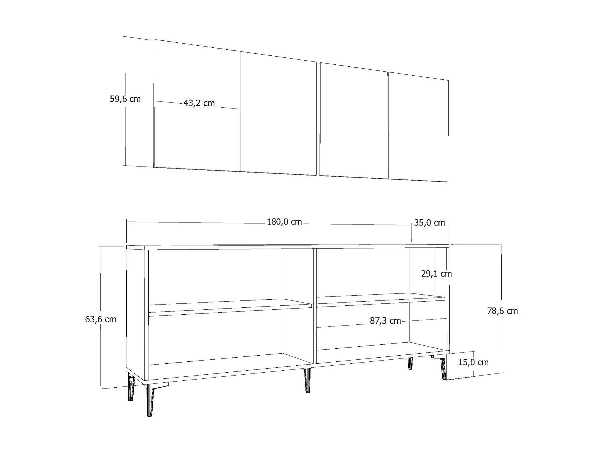 Buffet – 180 cm x 78,6 cm x 35 cm – Blanc et Argent – ​​Aggloméré