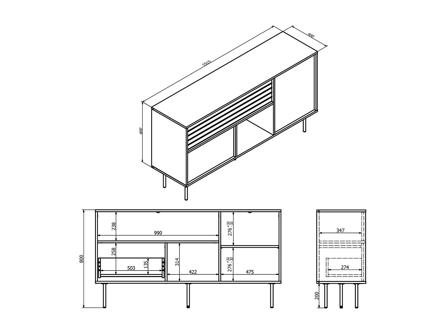 Buffet 2 portes 1 tiroir Astra Bois foncé et Cachemire