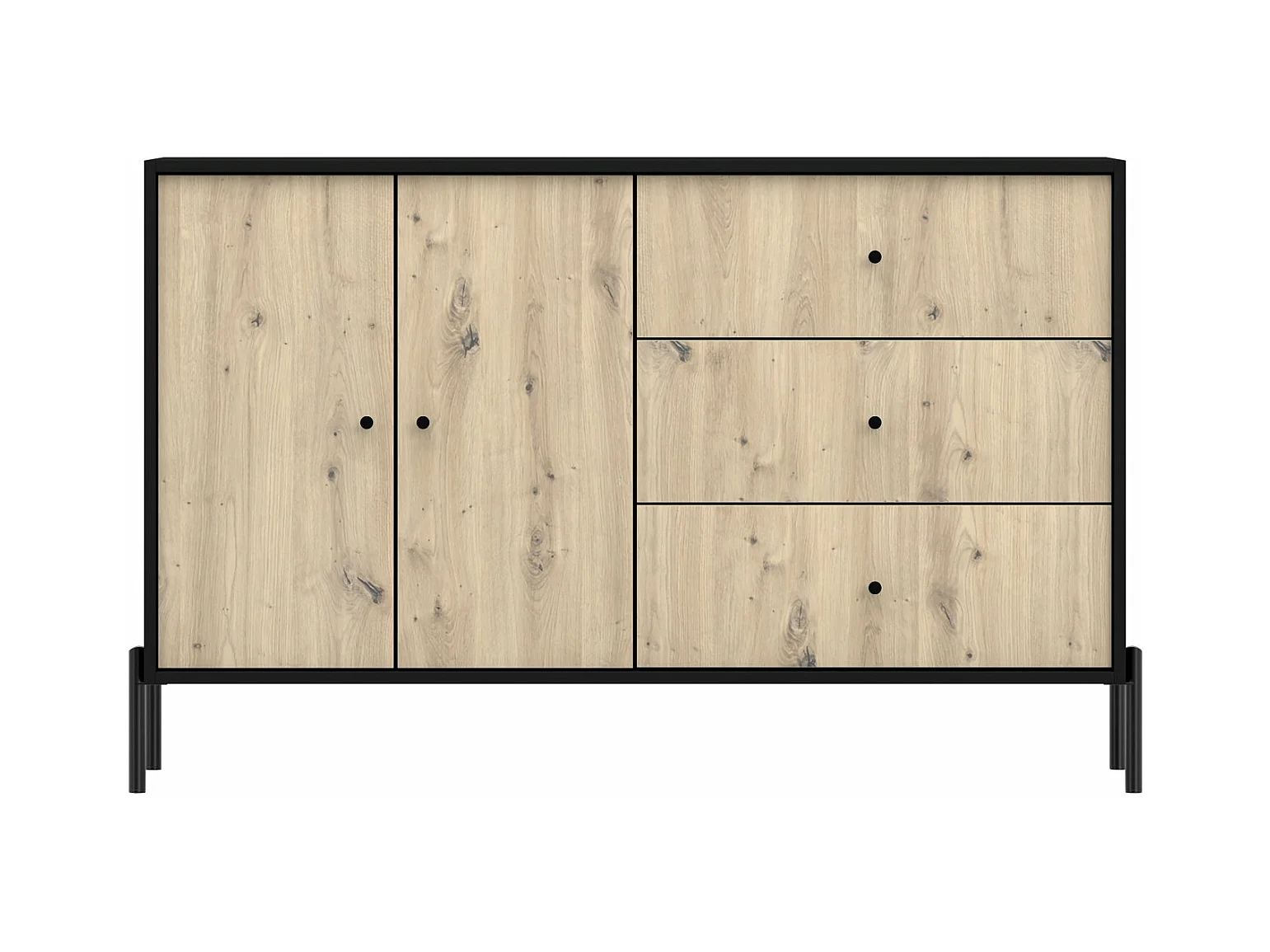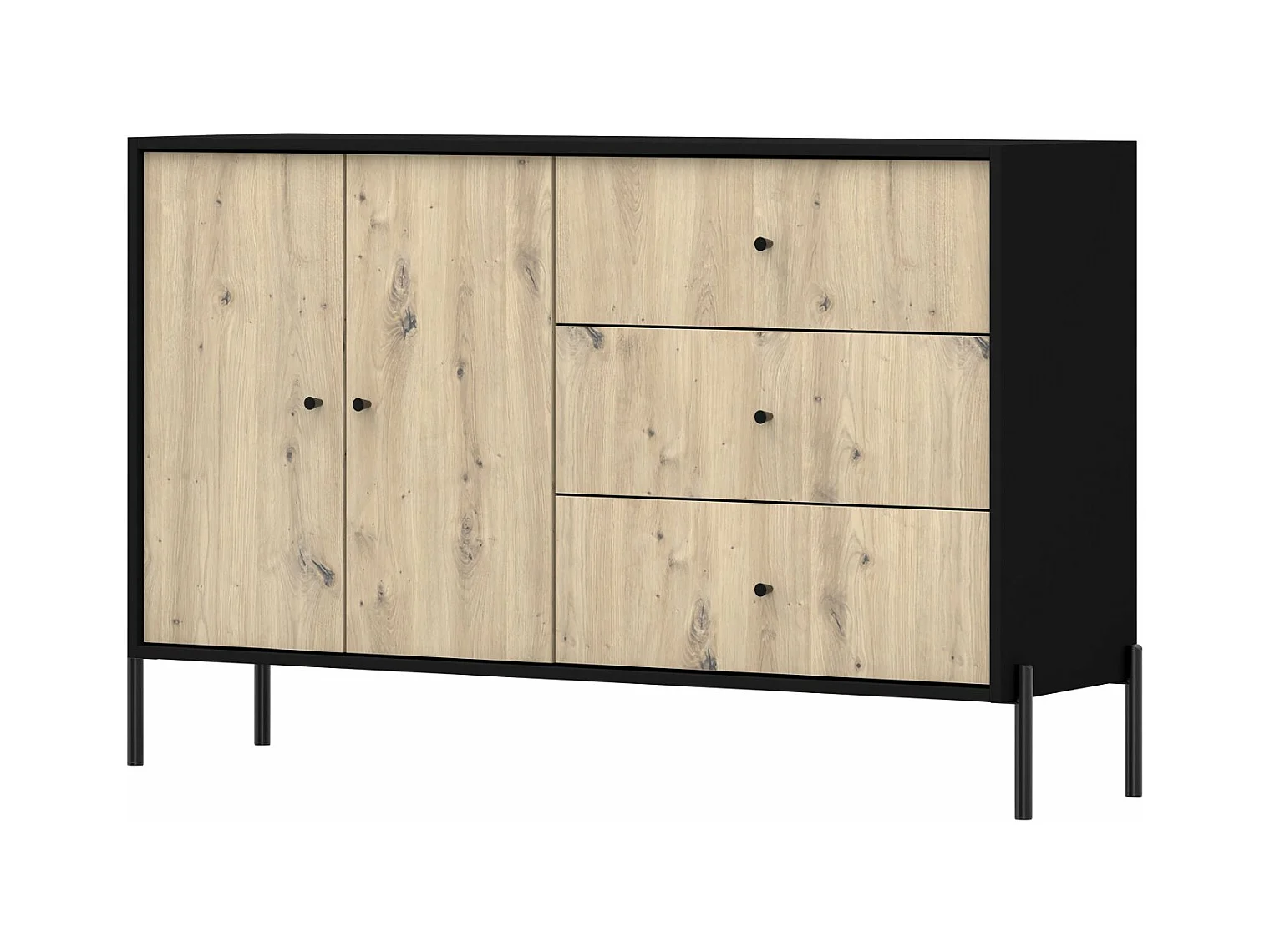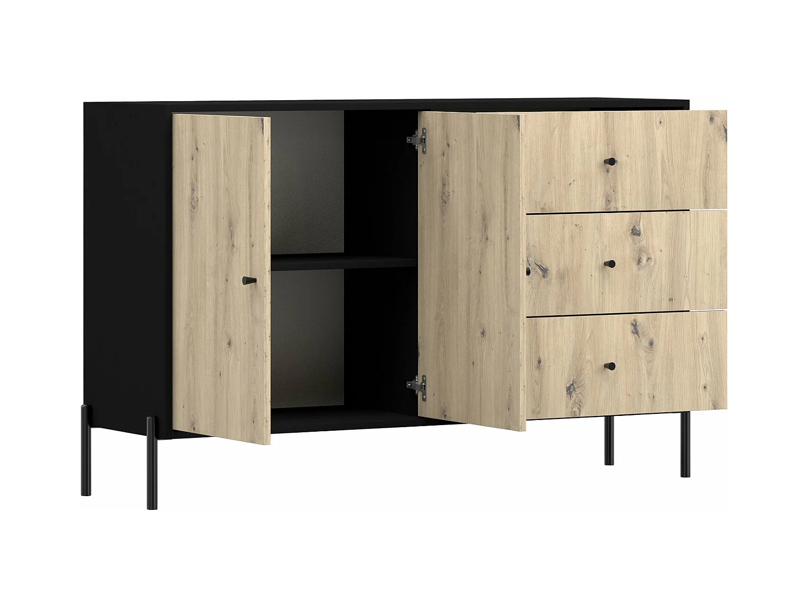 Buffet 2 portes - 150 cm - 3 tiroirs - noir/aspect chêne artisan - RAVIERO
