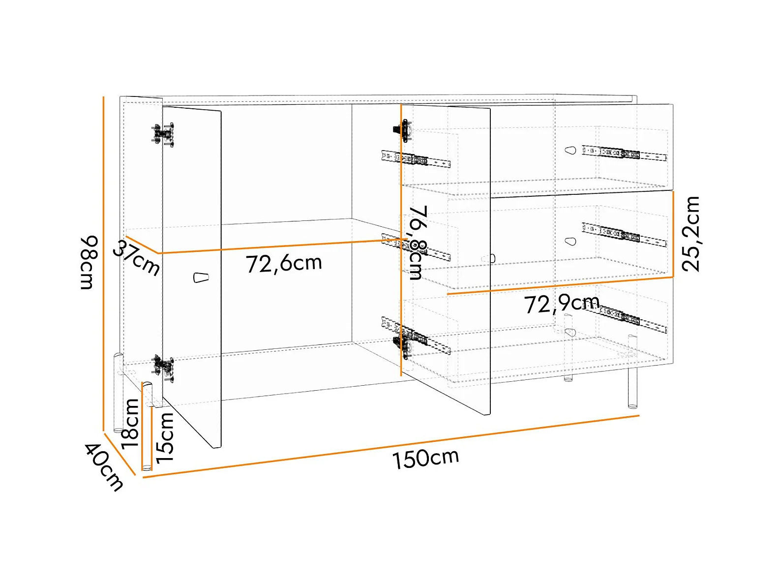 Buffet - 168 cm - 2 portes avec trois tiroirs - noir avec pieds noirs - ZOVA