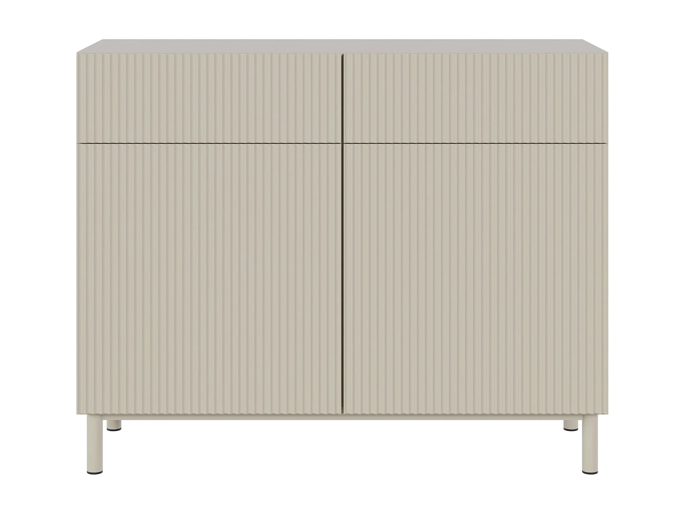 Buffet 2 portes 2 tiroirs avec façade à rainures – 100 cm – greige – Veldio New