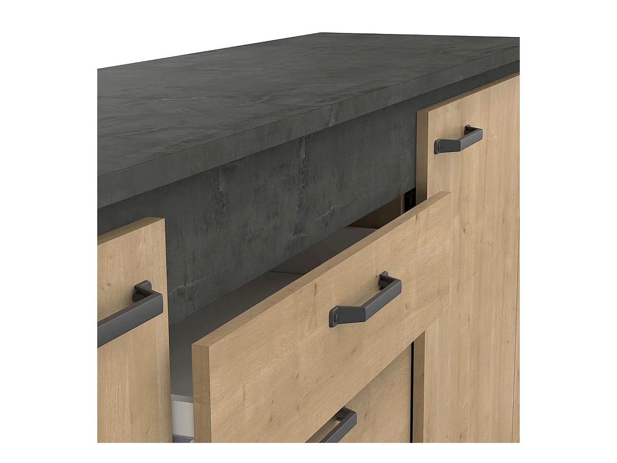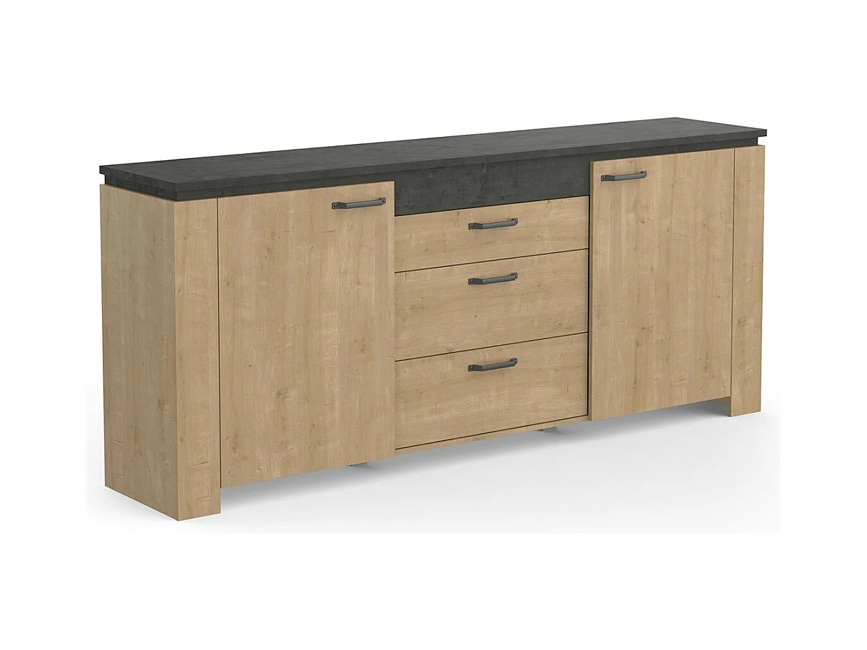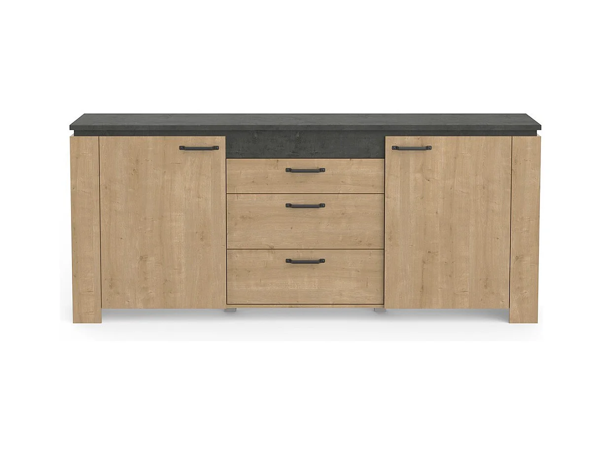 Buffet 2 portes 3 tiroirs décor chêne et gris anthracite Austin - L203,80 cm