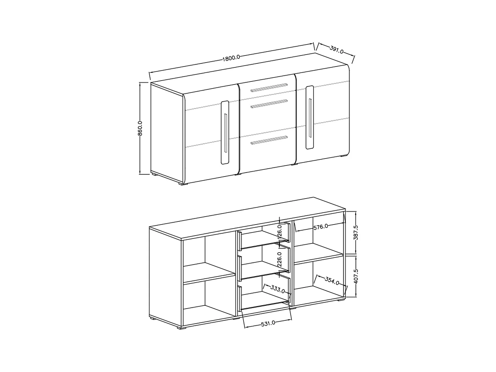 Buffet 2 portes 3 tiroirs avec LED Louis Bois