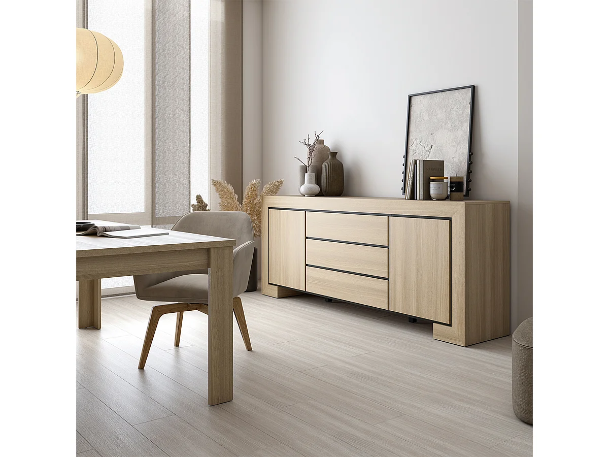 Buffet 2 portes 3 tiroirs Eden Bois et Metal