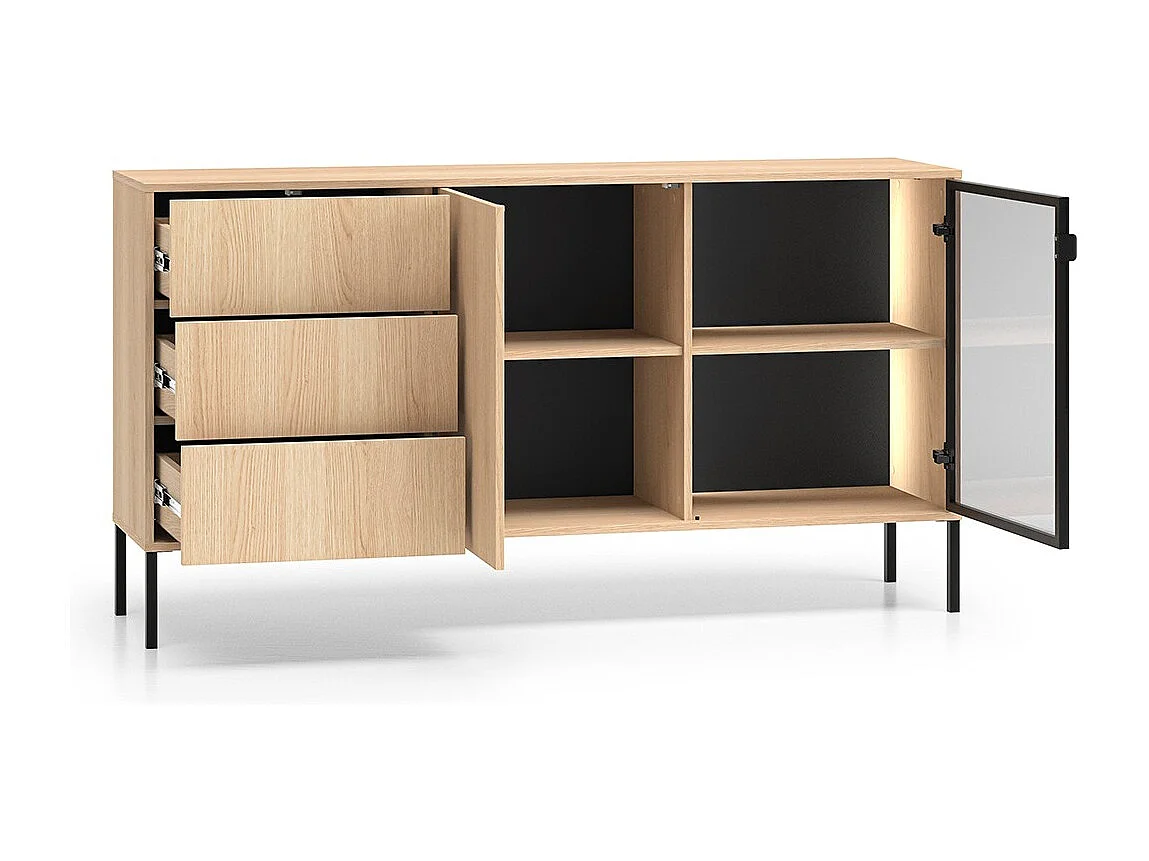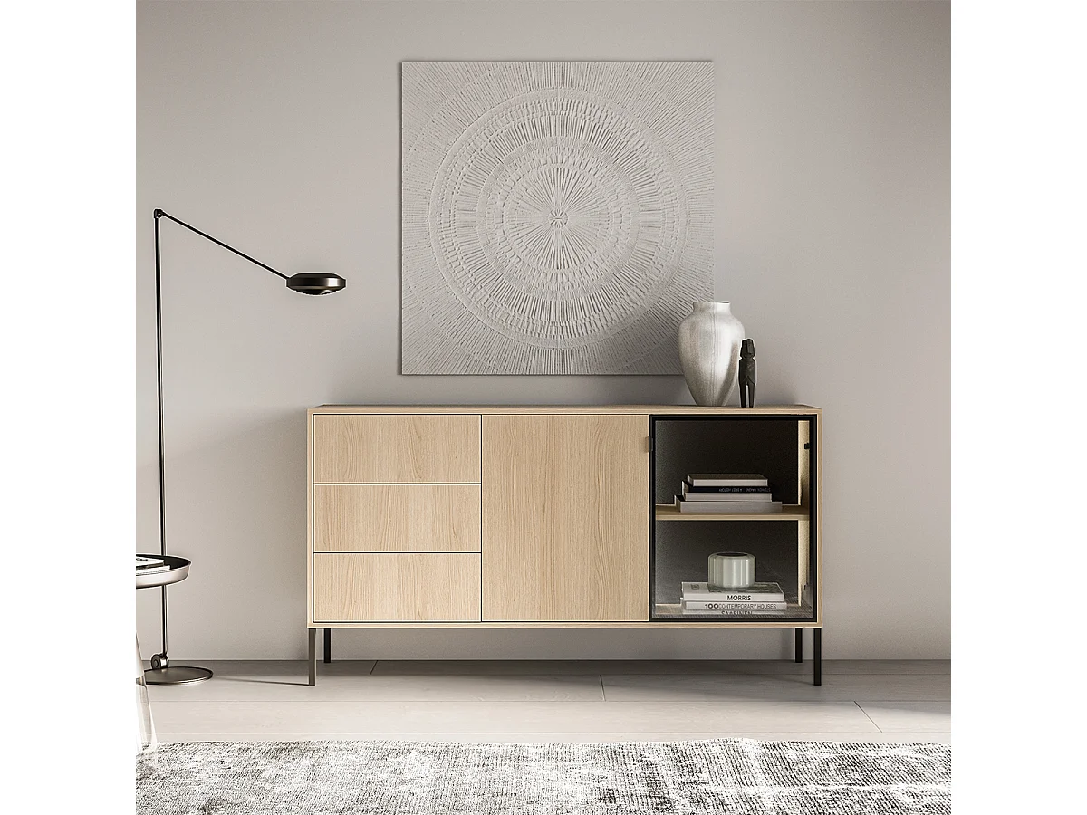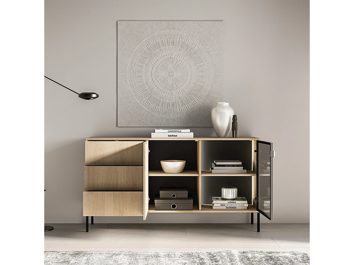Buffet 2 portes 3 tiroirs Paige Bois et Noir