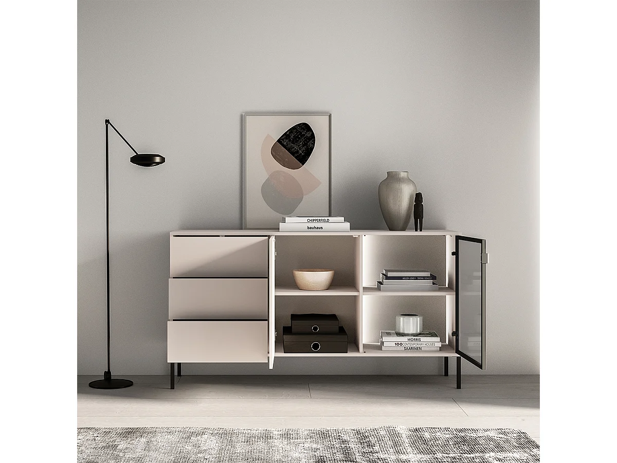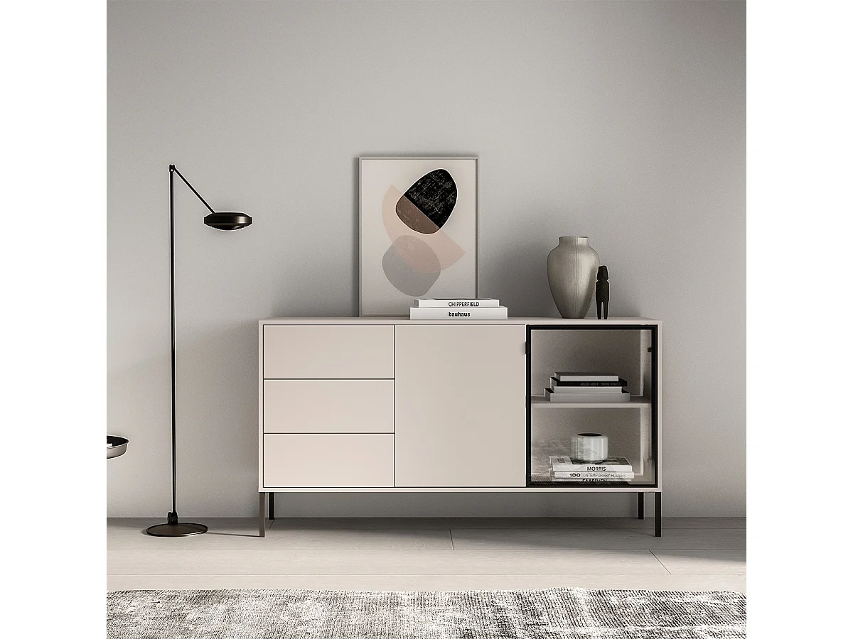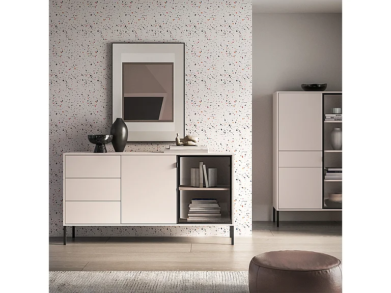 Buffet 2 portes 3 tiroirs Paige Cachemire et Noir