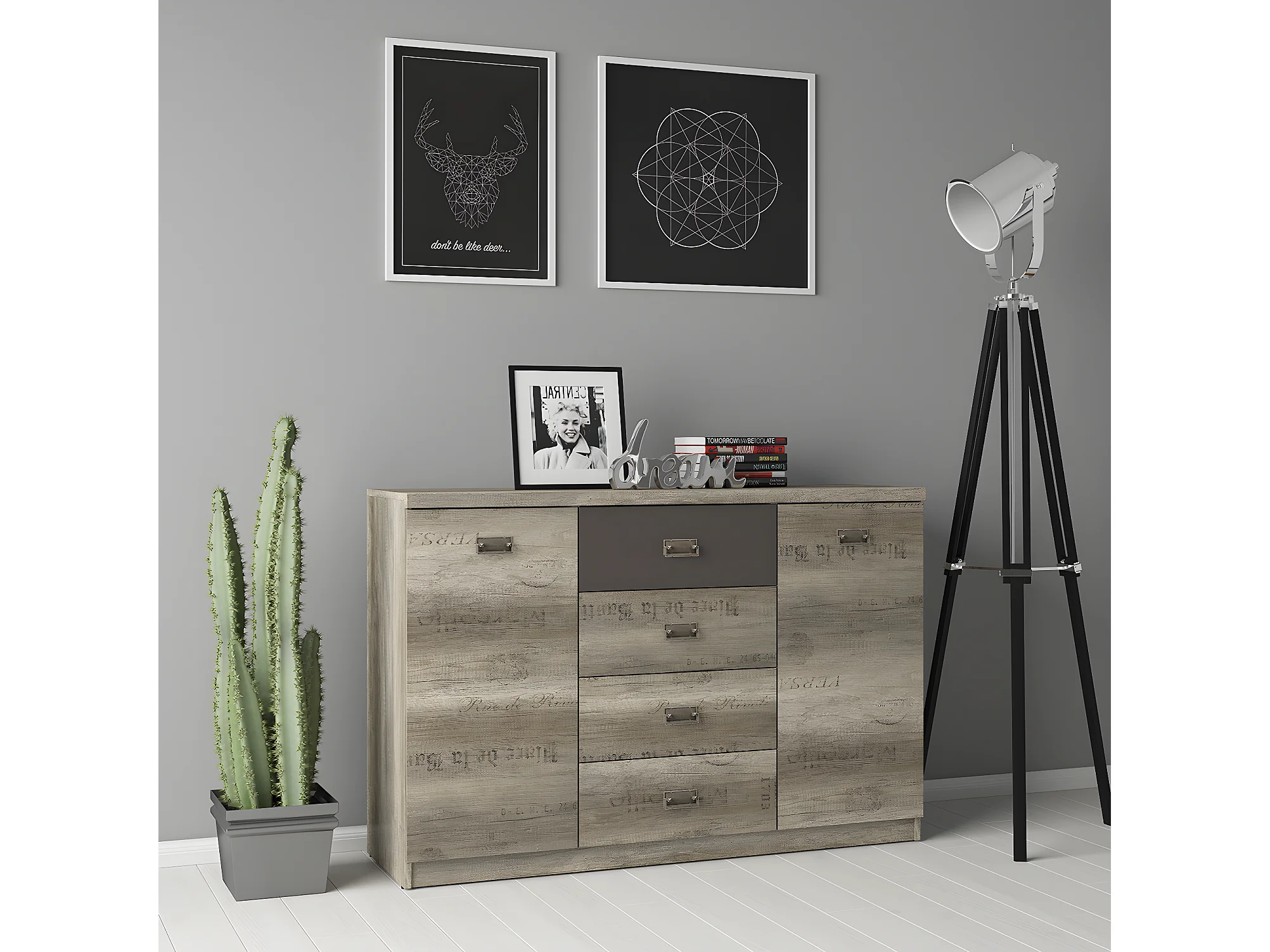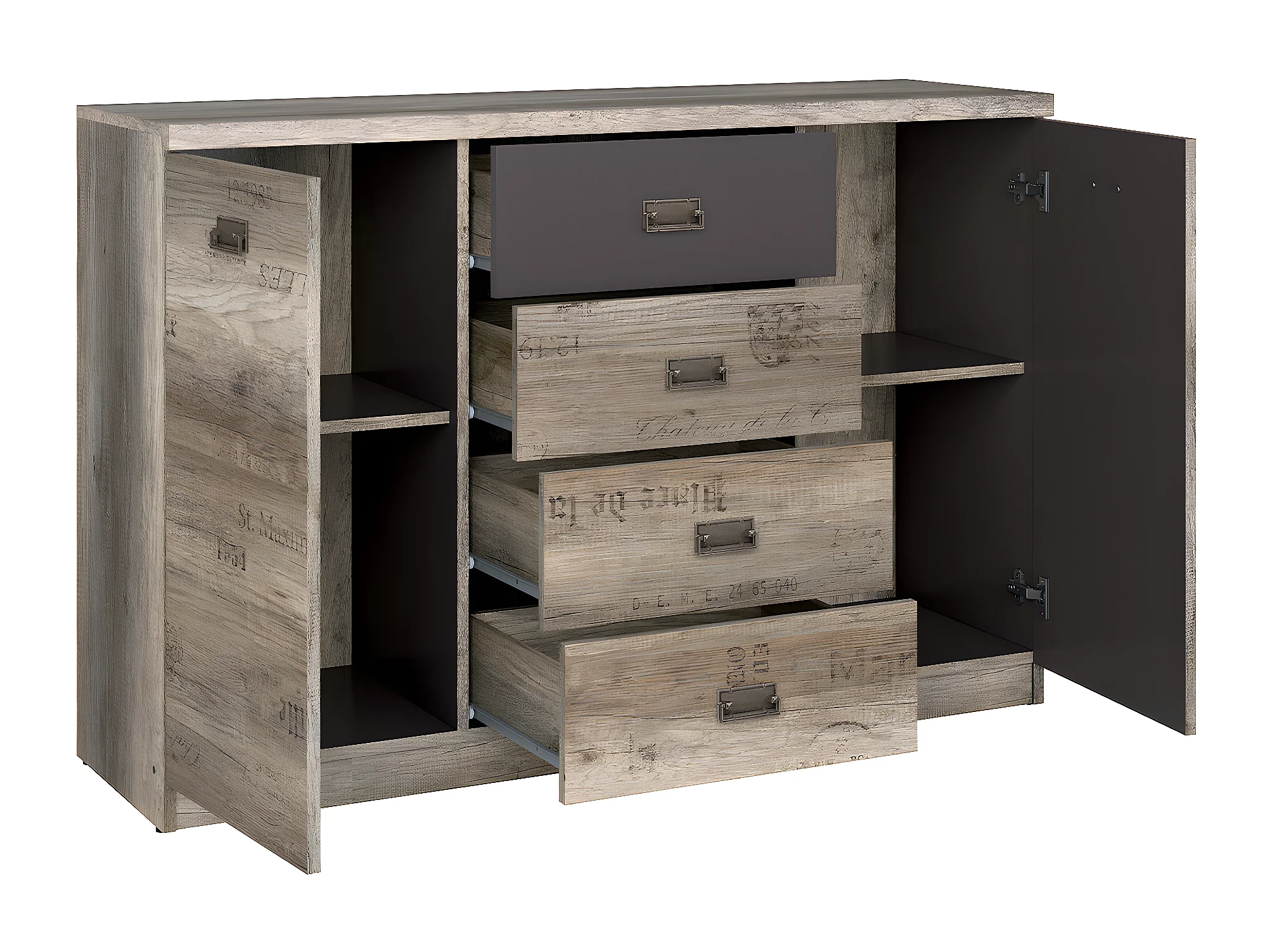 Buffet 2 portes 4 tiroirs Abel Bois et Gris