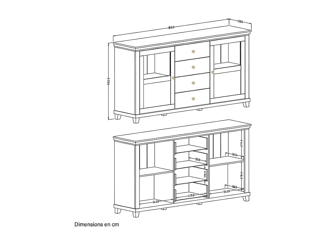 Buffet 2 portes 4 tiroirs Martin Vert et Bois