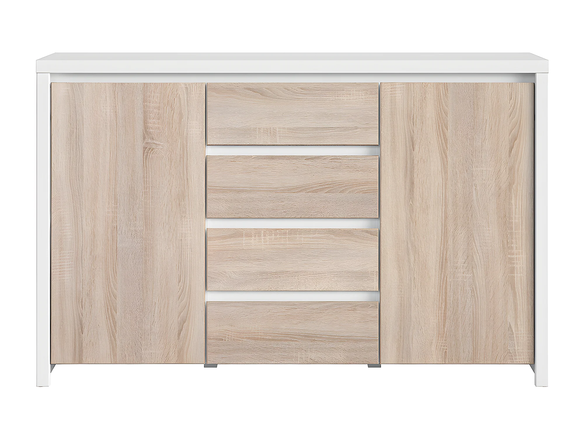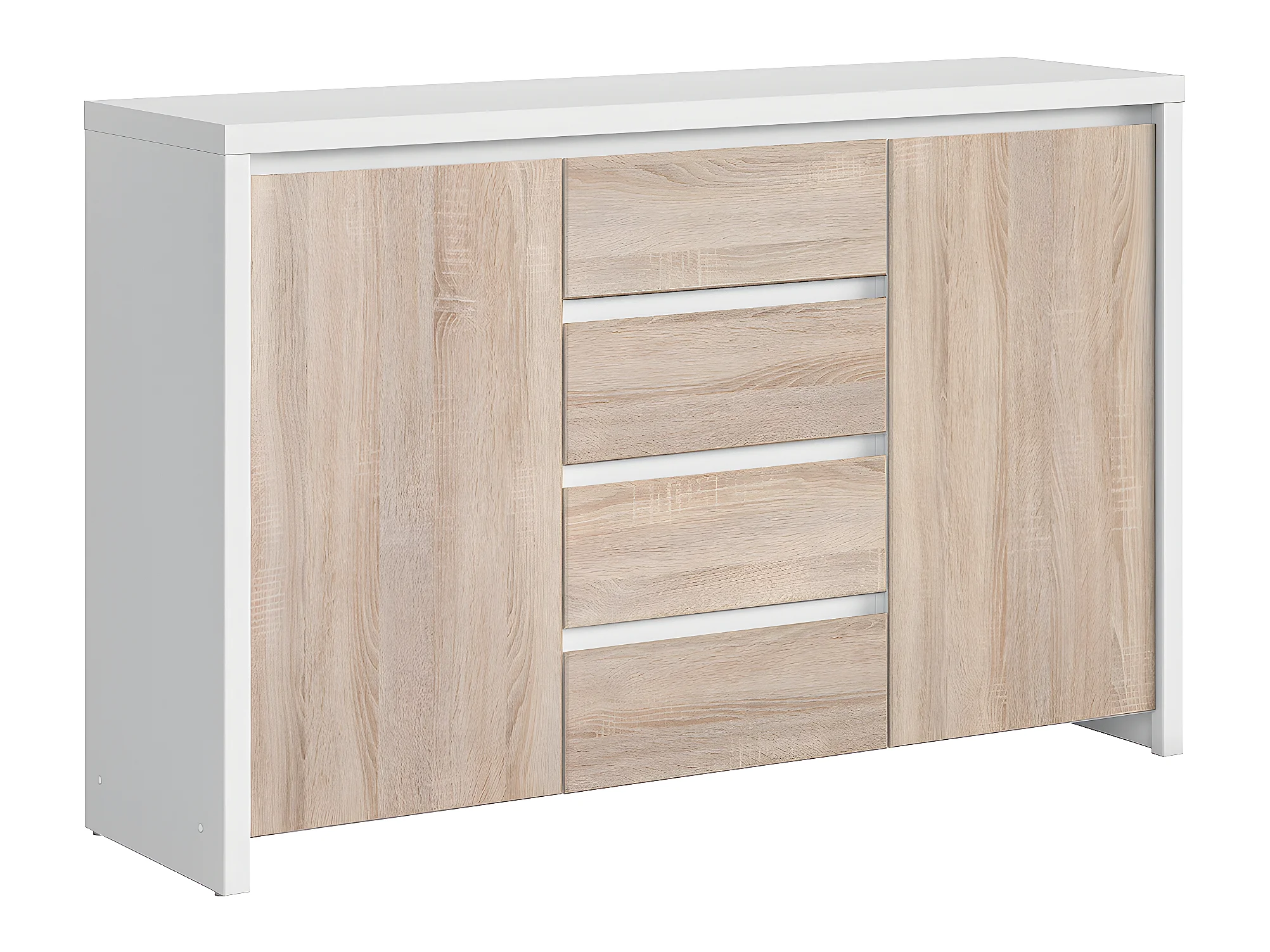 Buffet 2 portes 4 tiroirs Soren Blanc et Bois