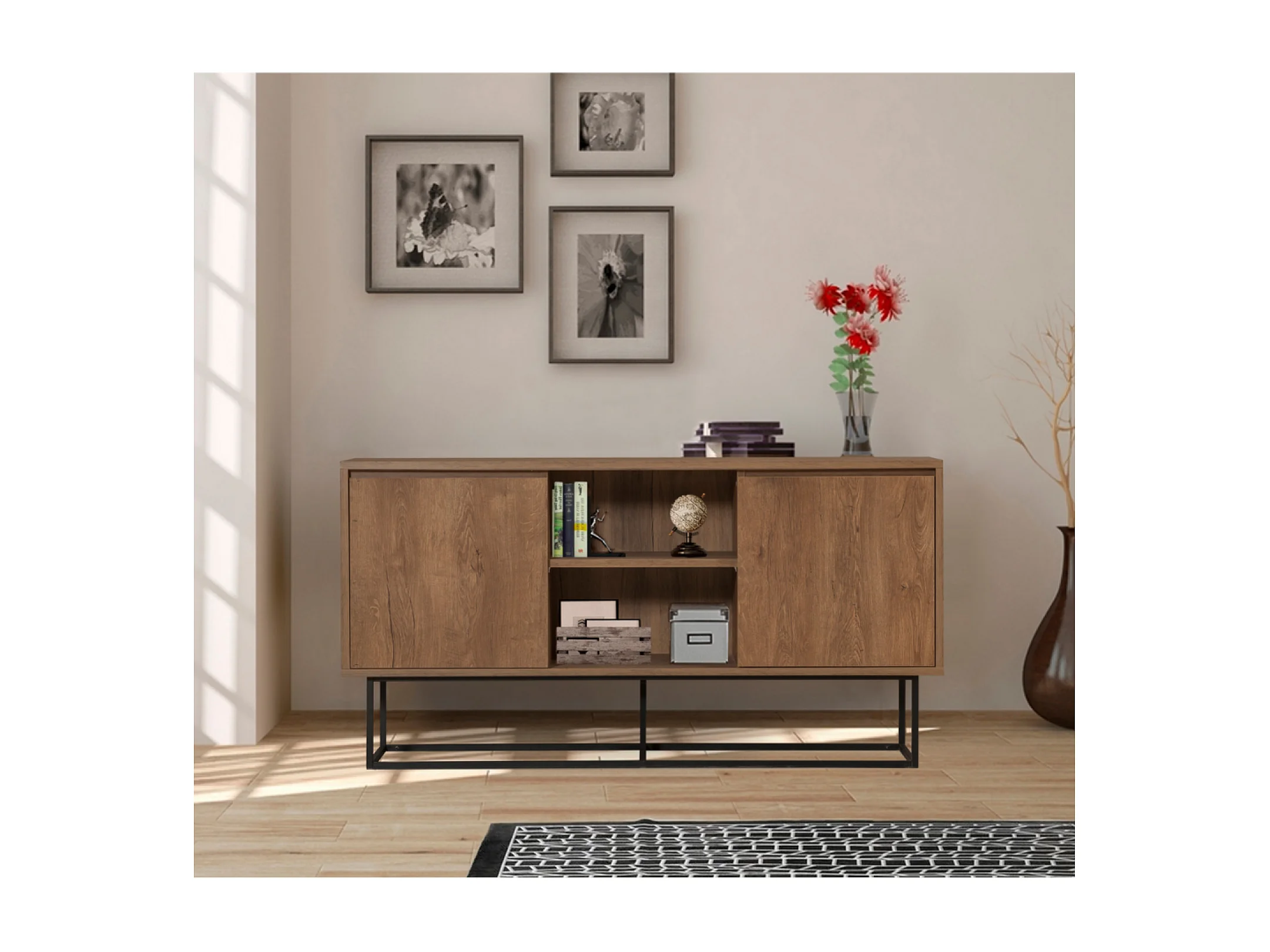 Buffet 2 portes 6 espaces de rangement 140 cm BREZNO