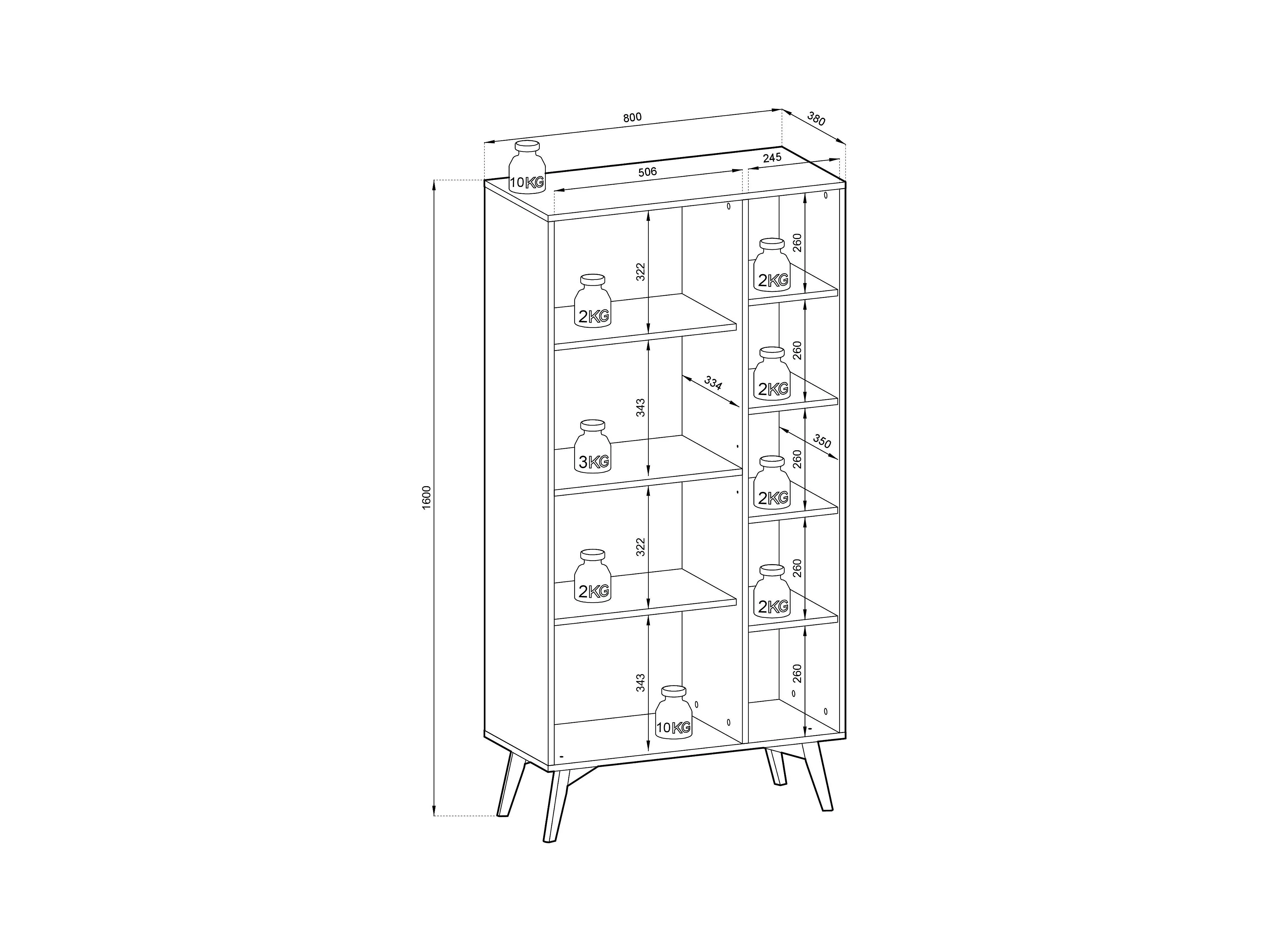 Buffet 2 portes avec 5 étagères ouvertes en bois lamellé, 80x160 cm