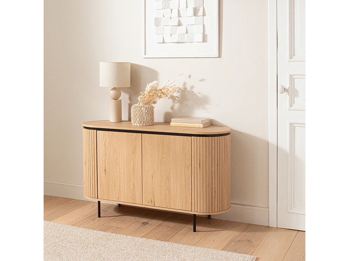 Buffet 2 Portes avec Effet Rainuré L120 cm - MALAGA