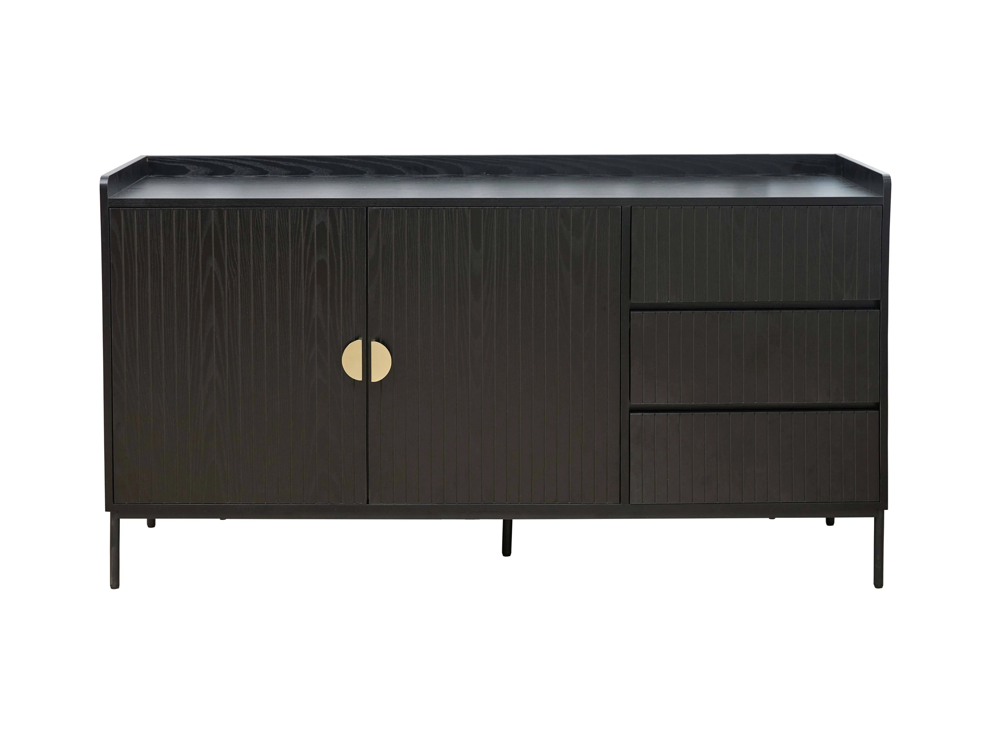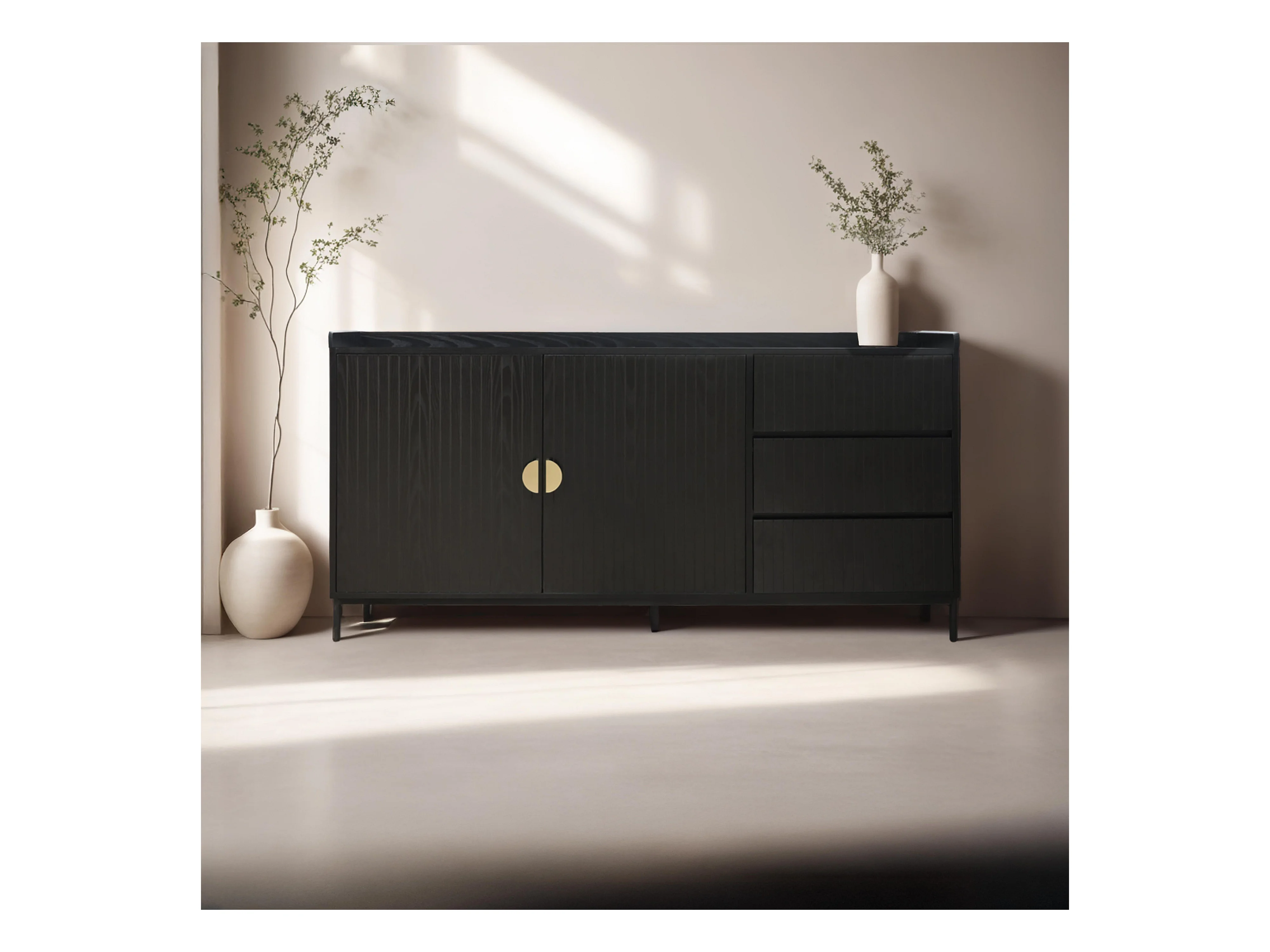 Buffet design effet bois foncé 2 portes 3 tiroirs 150 cm noir