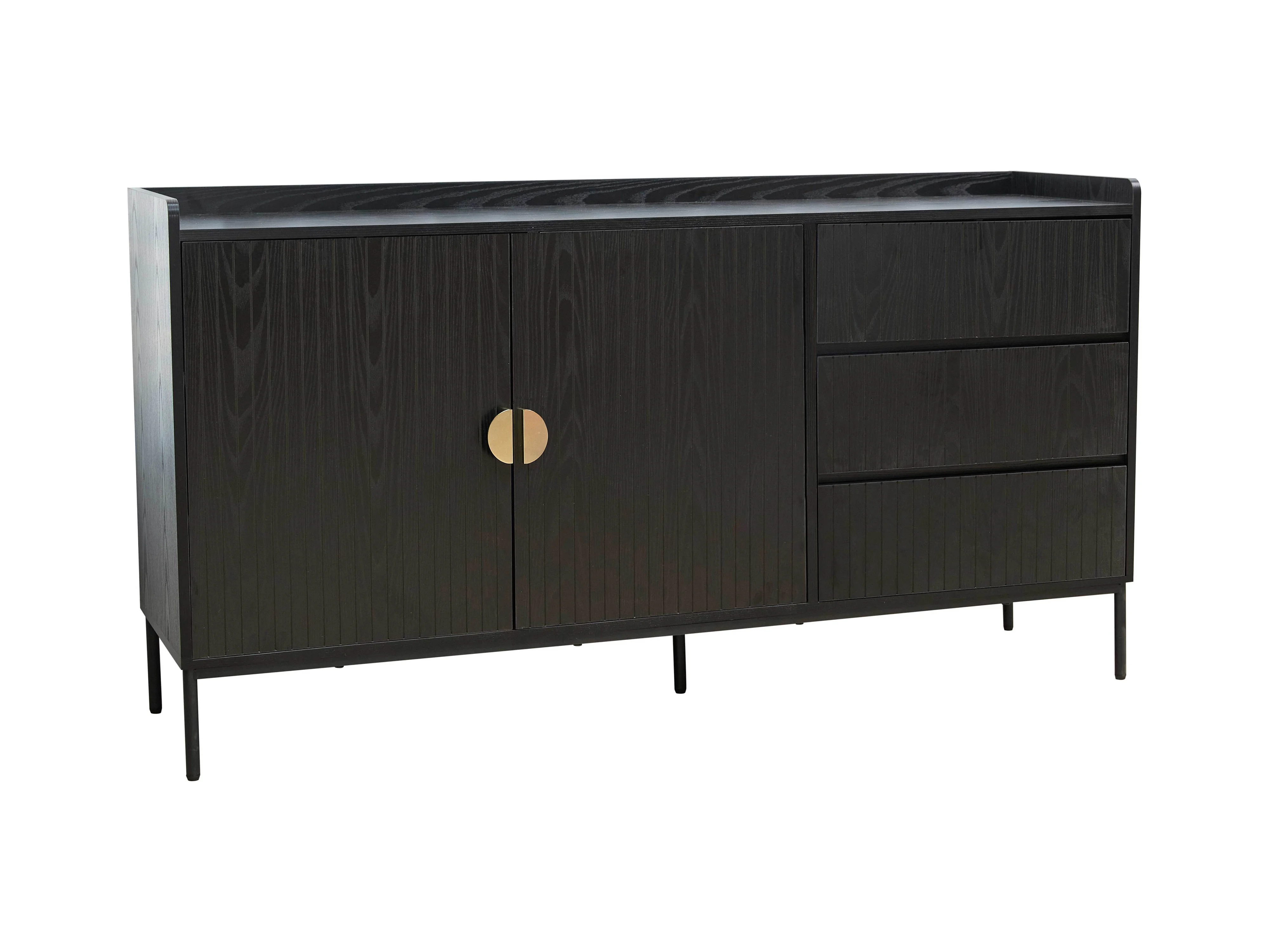 Buffet scandinave effet bois clair 2 portes 3 tiroirs 150 cm noir
