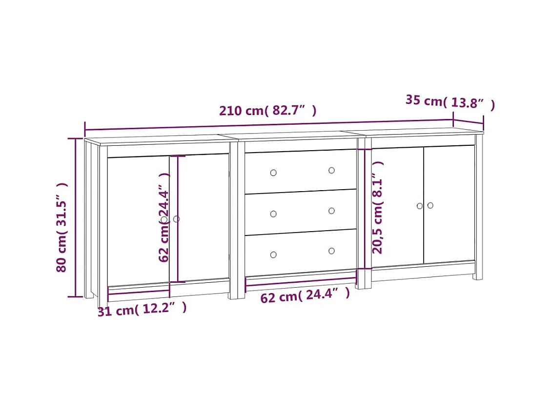 Buffet 210x35x80 cm Bois massif de pin QWE56469