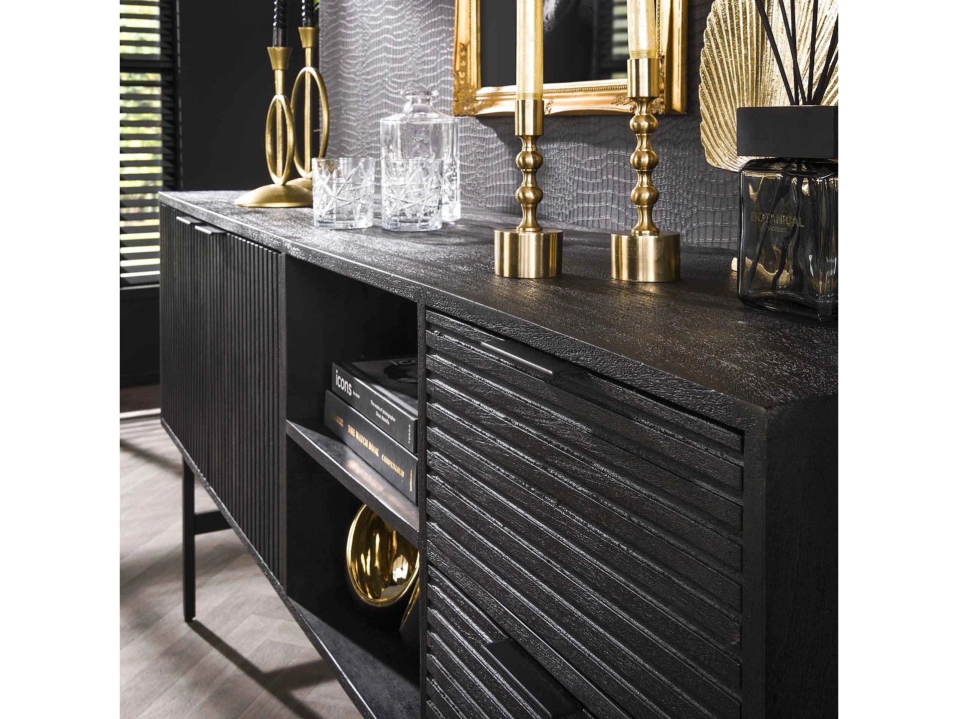 Buffet noir et doré 110x30x75 cm bois massif de manguier