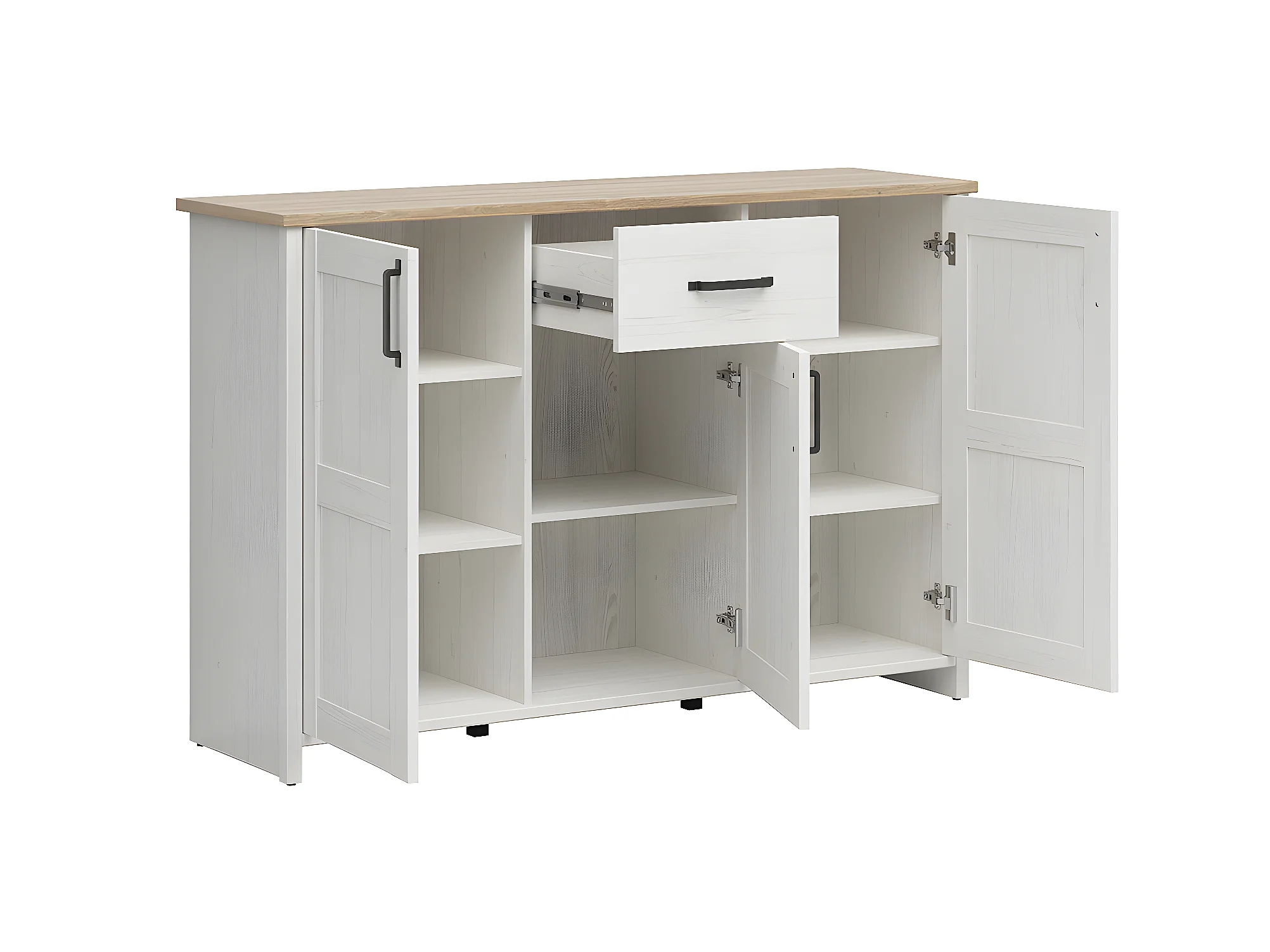 Buffet 2 portes 4 tiroirs Victoria Blanc et Bois