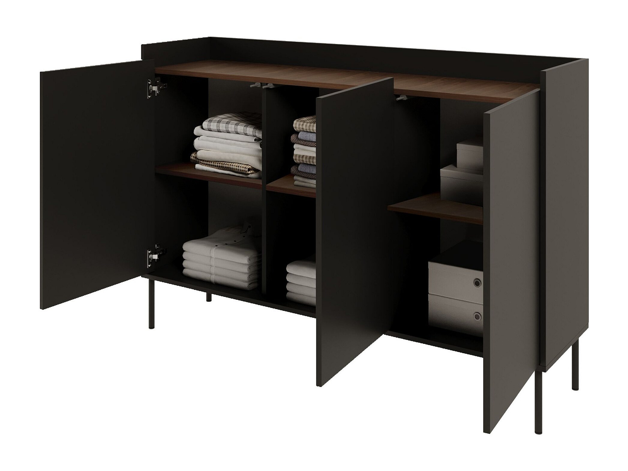 Buffet 3 portes – 140 cm – Noir/Noyer du Wisconsin – SELSEY TOVI
