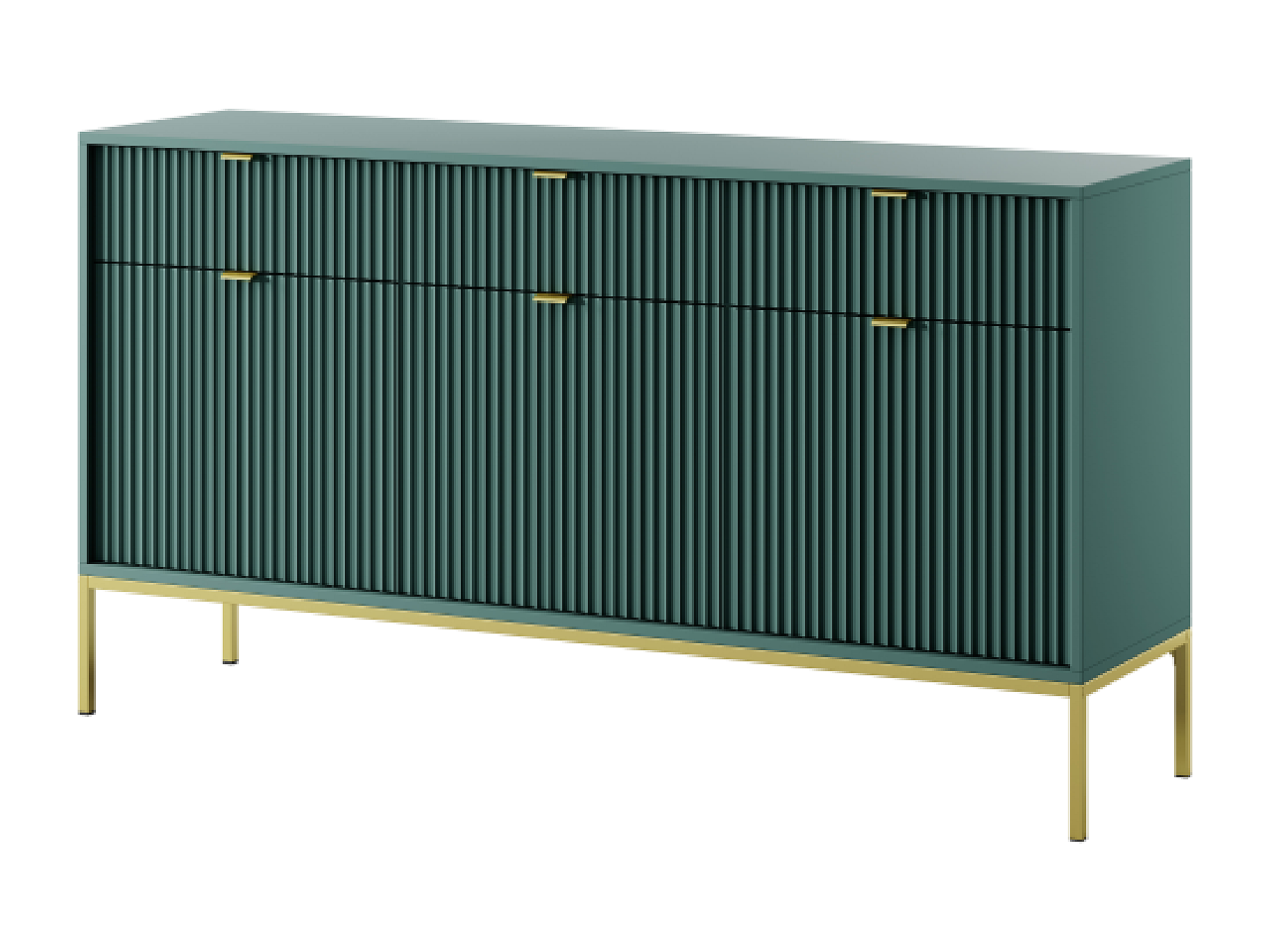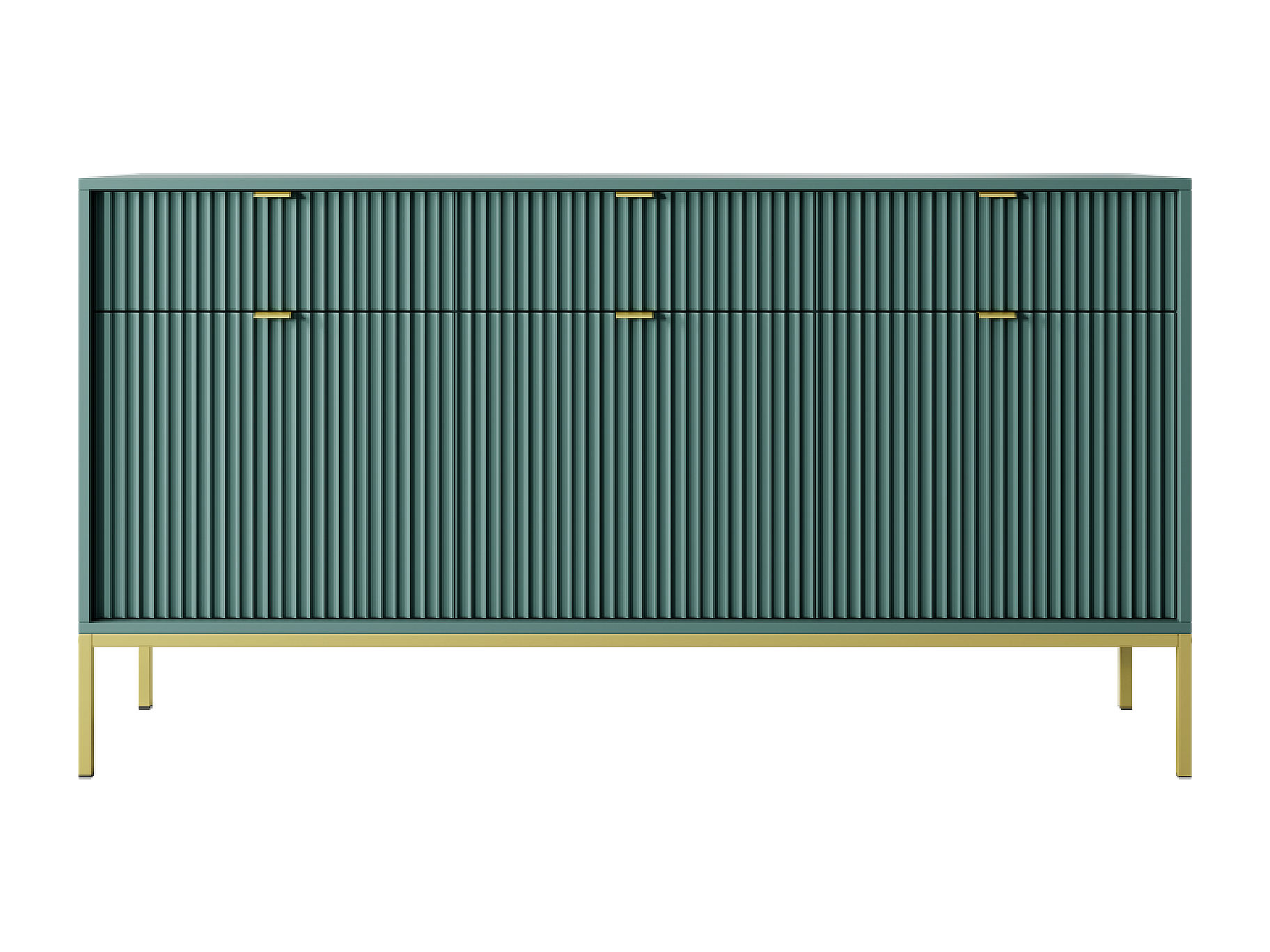 Buffet 3 portes, 3 tiroirs avec pieds en métal doré, 154x83 cm