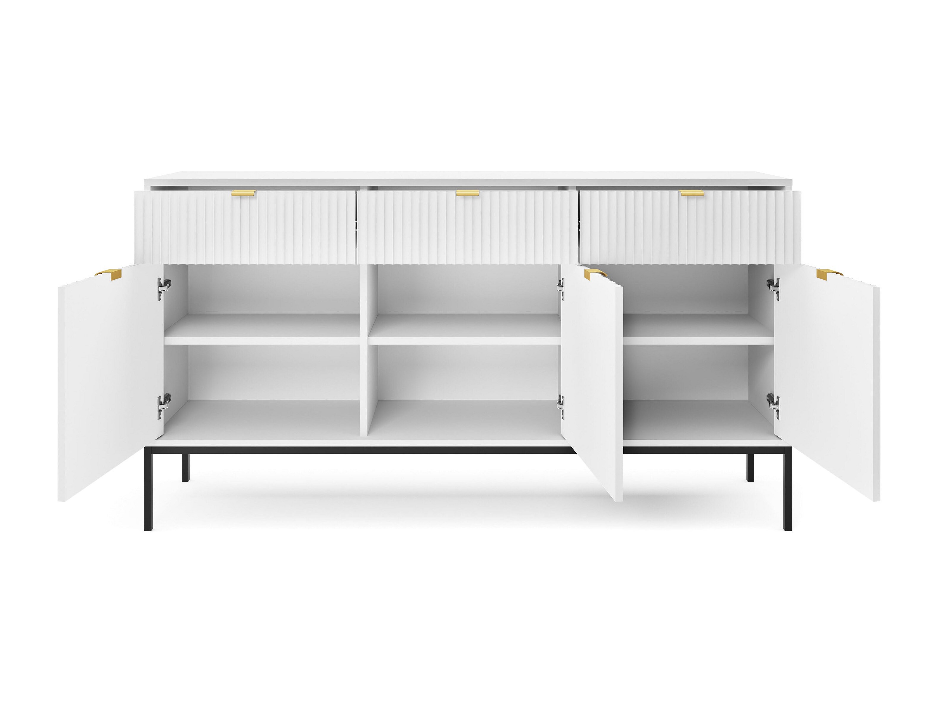 Buffet 3 portes, 3 tiroirs avec pieds en métal noir, 154x83 cm