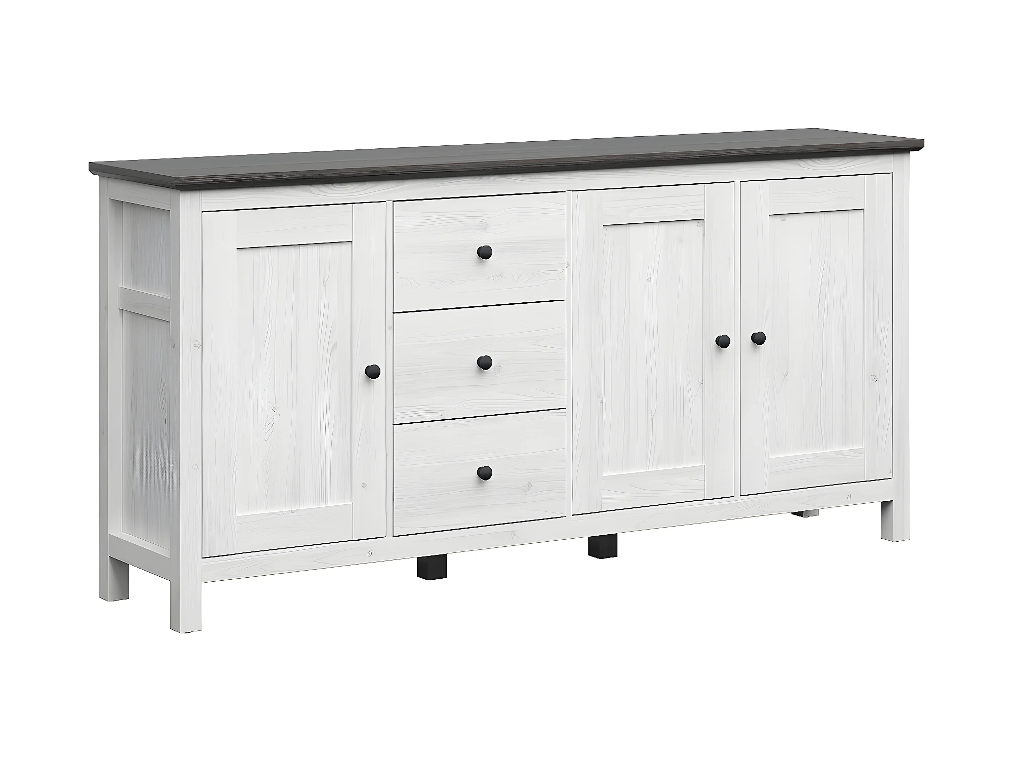Buffet 2 portes 3 tiroirs Duck Blanc et Bois foncé