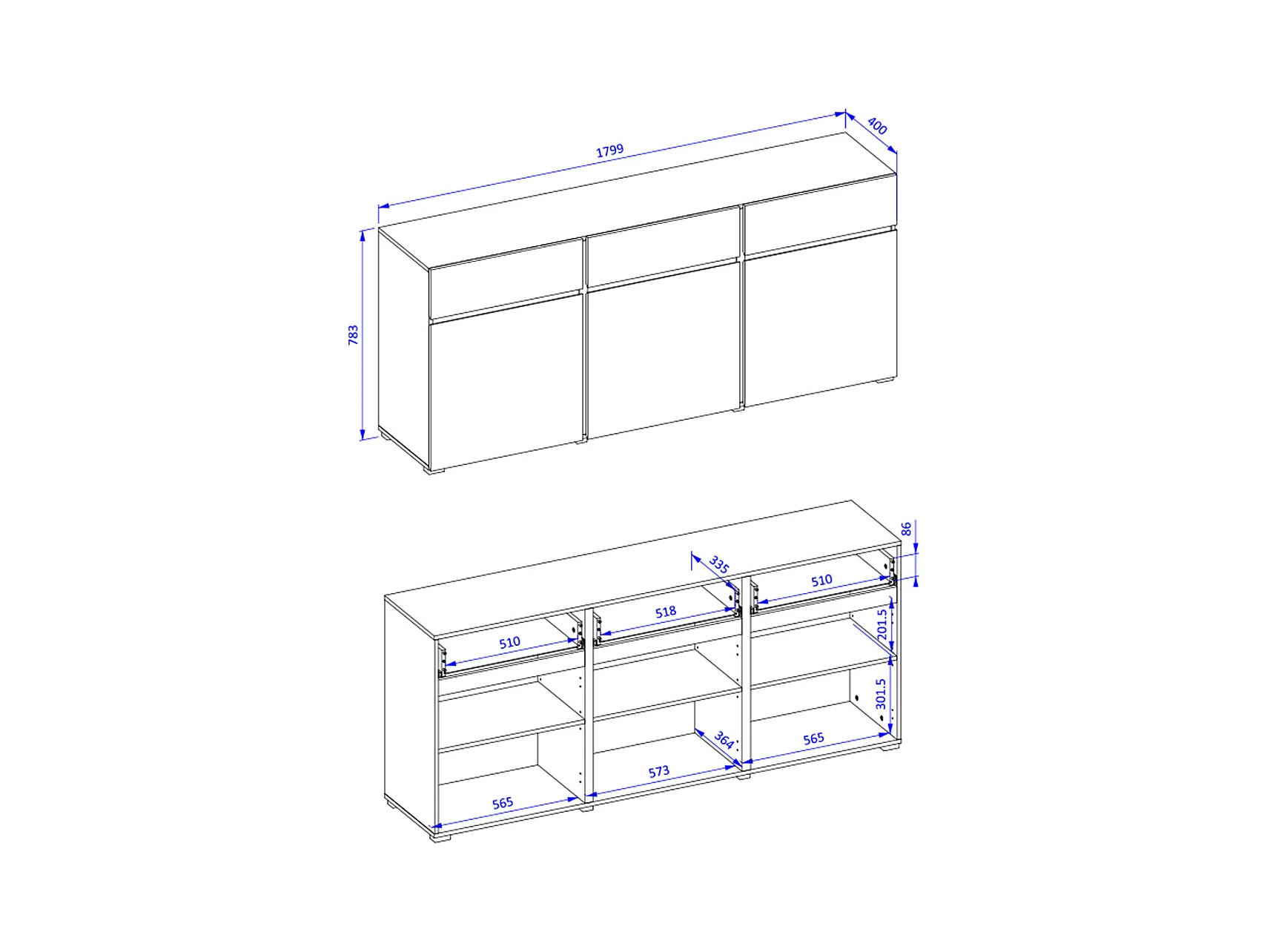 Buffet en bois stratifié 2 portes et 3 tiroirs, 158x80 cm