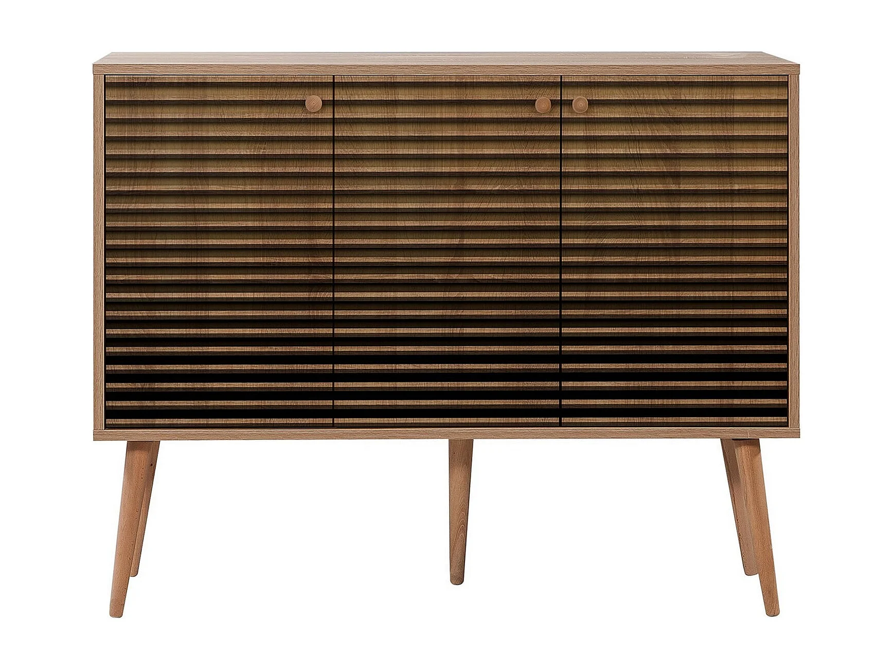 Buffet 3 portes Areva 120x90cm Motif Rayures Bois Naturel et Marron