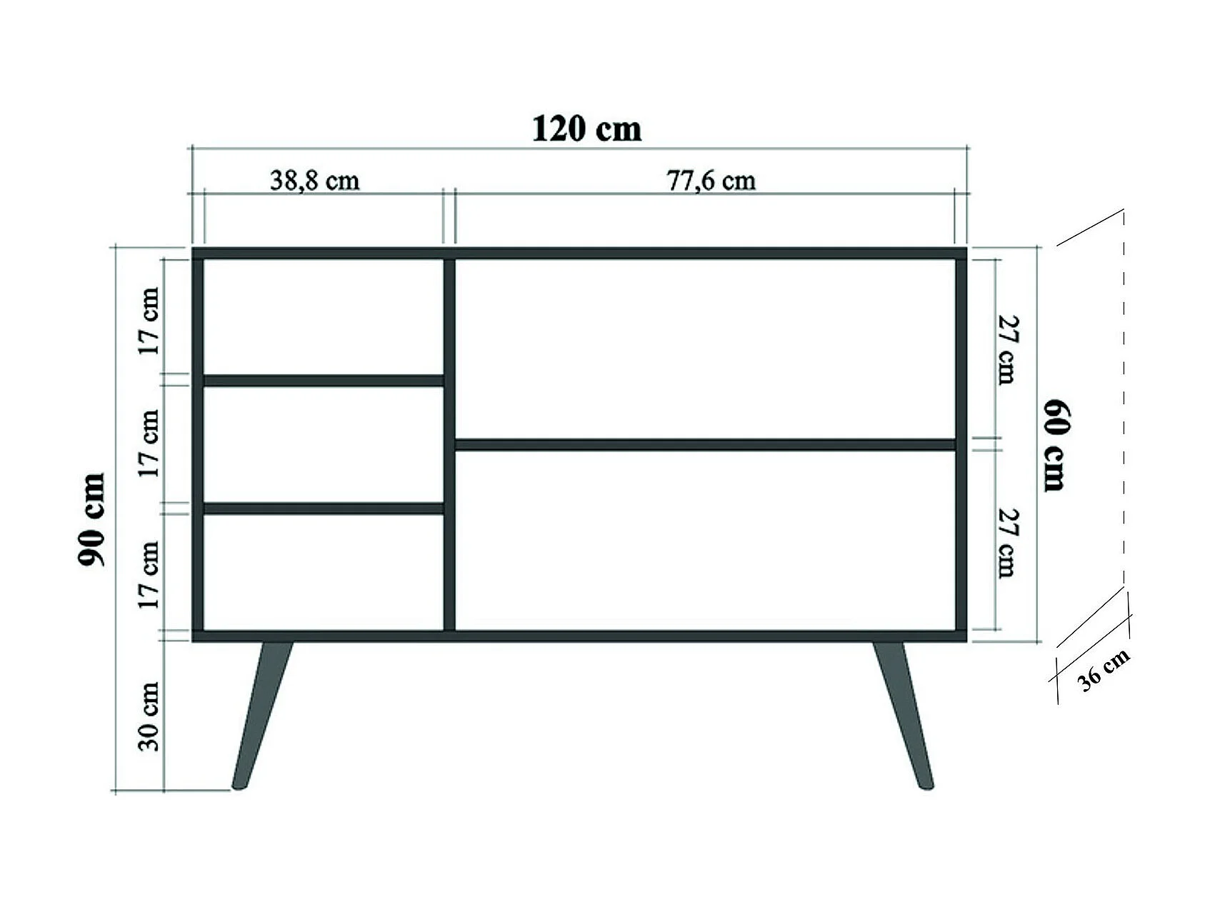 Buffet 3 portes Repono 120x90cm Motif Carreaux Bois Motif géométrique