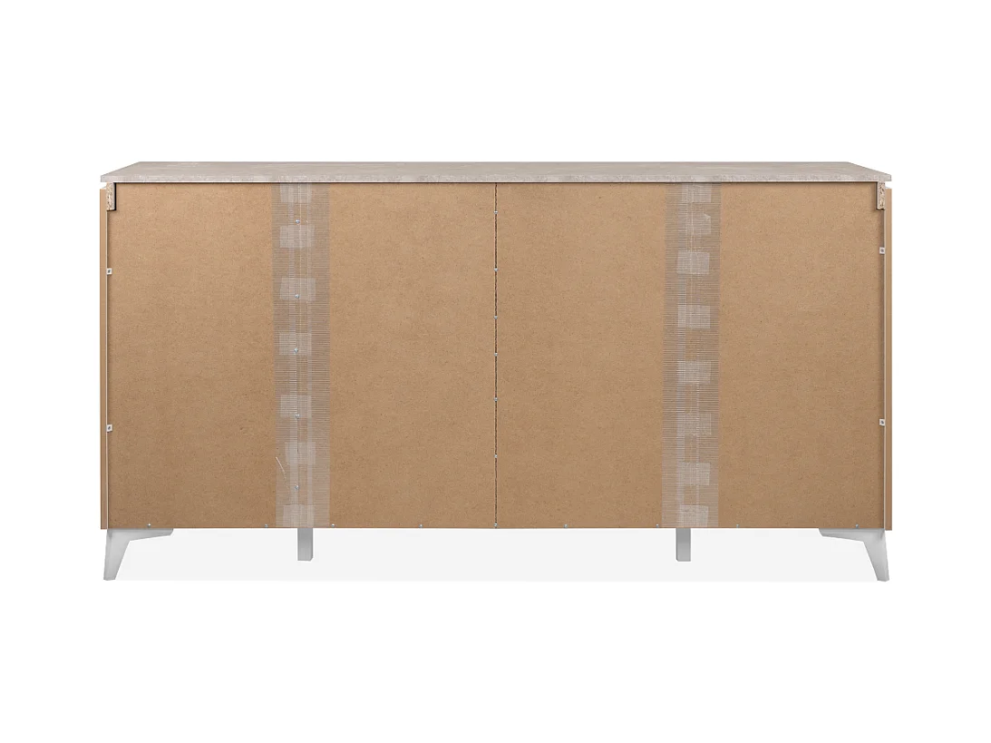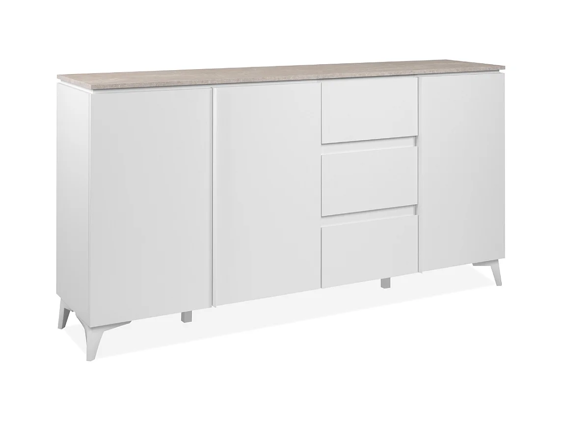 Buffet 3 portes et 3 tiroirs décor travertin et blanc L177cm - BERTRIX