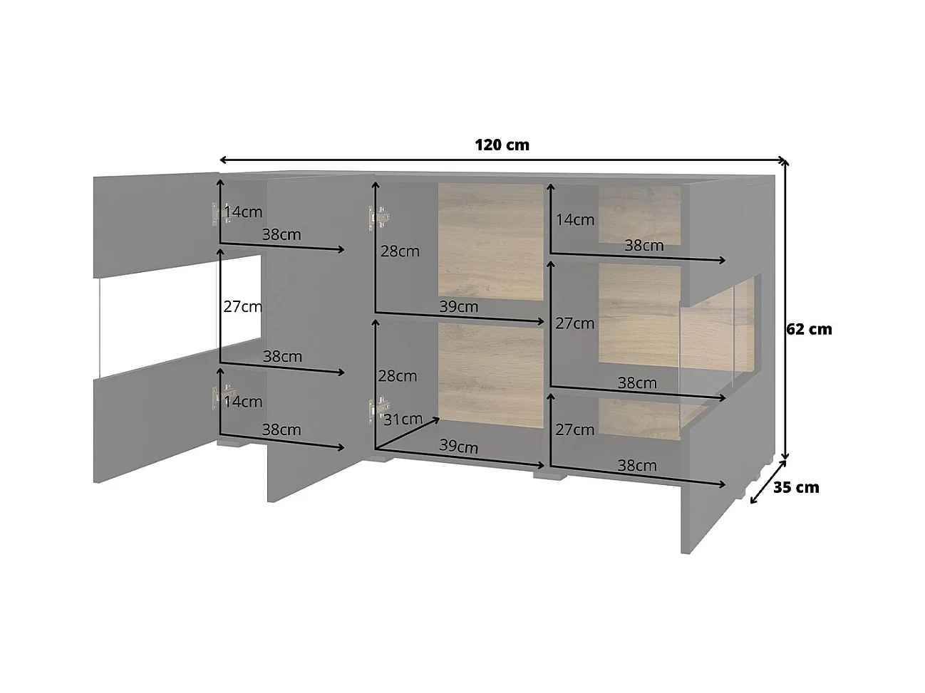 Buffet 2 portes 3 tiroirs Eden Bois et Metal