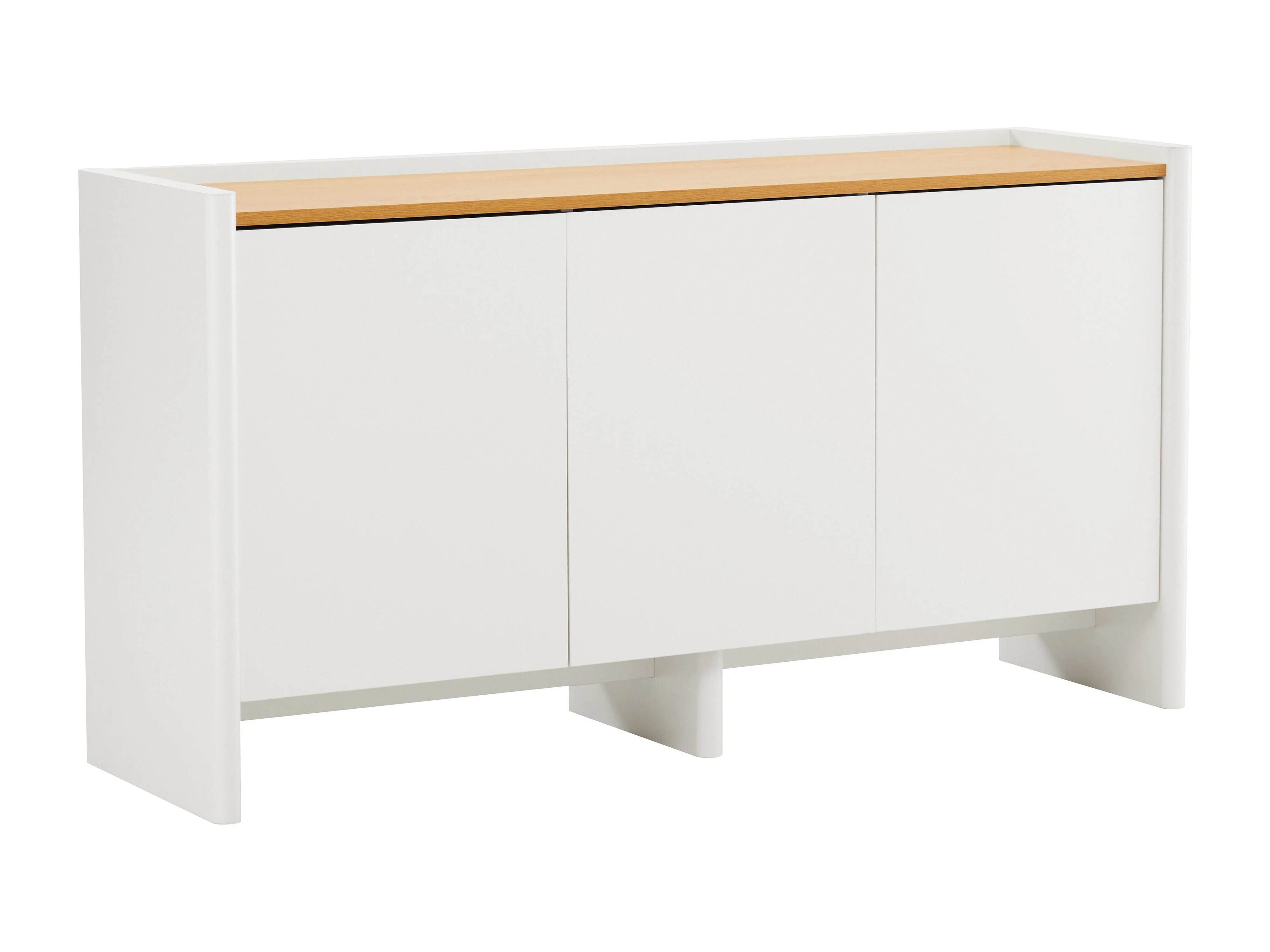 Buffet scandinave effet bois clair 2 portes 3 tiroirs 150 cm blanc