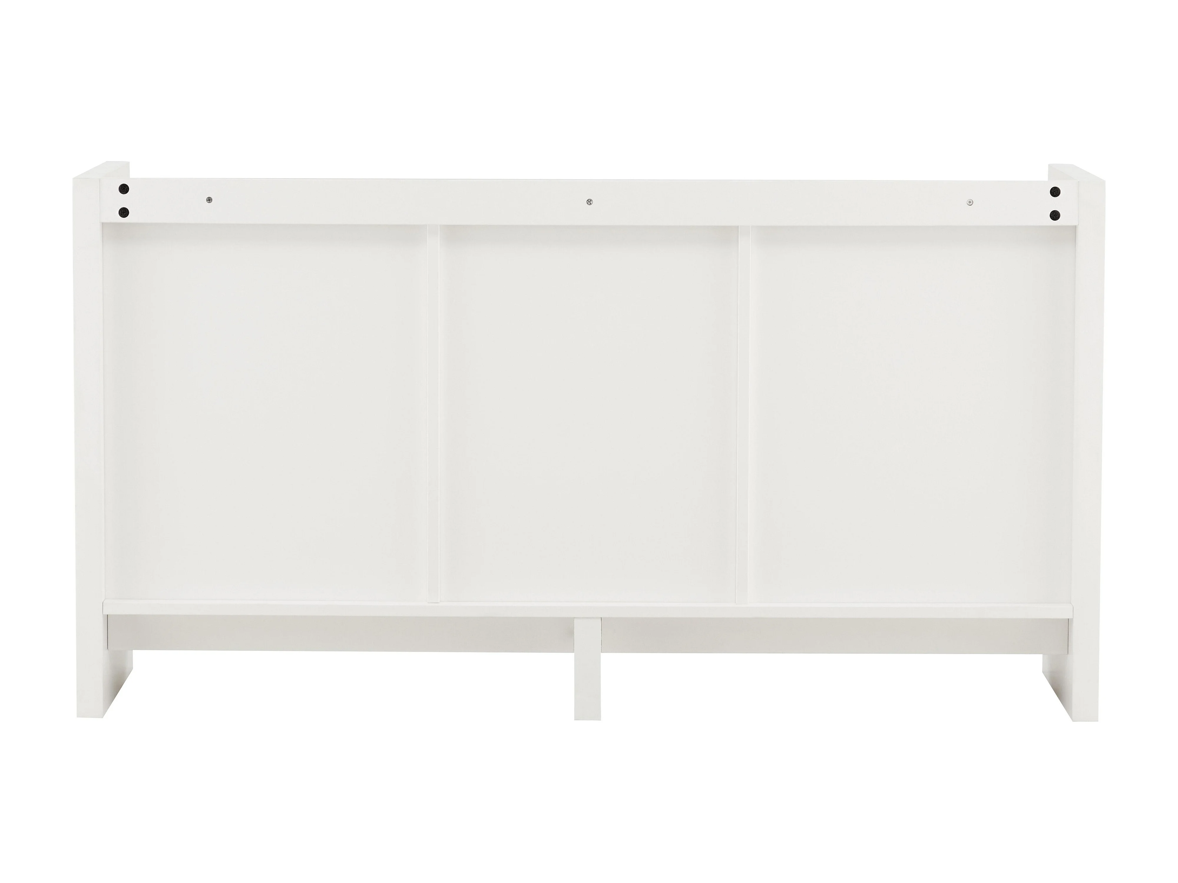 Buffet 140x40x80cm - armoire avec 4 portes, pieds en métal, brillant, design géométrique blanc