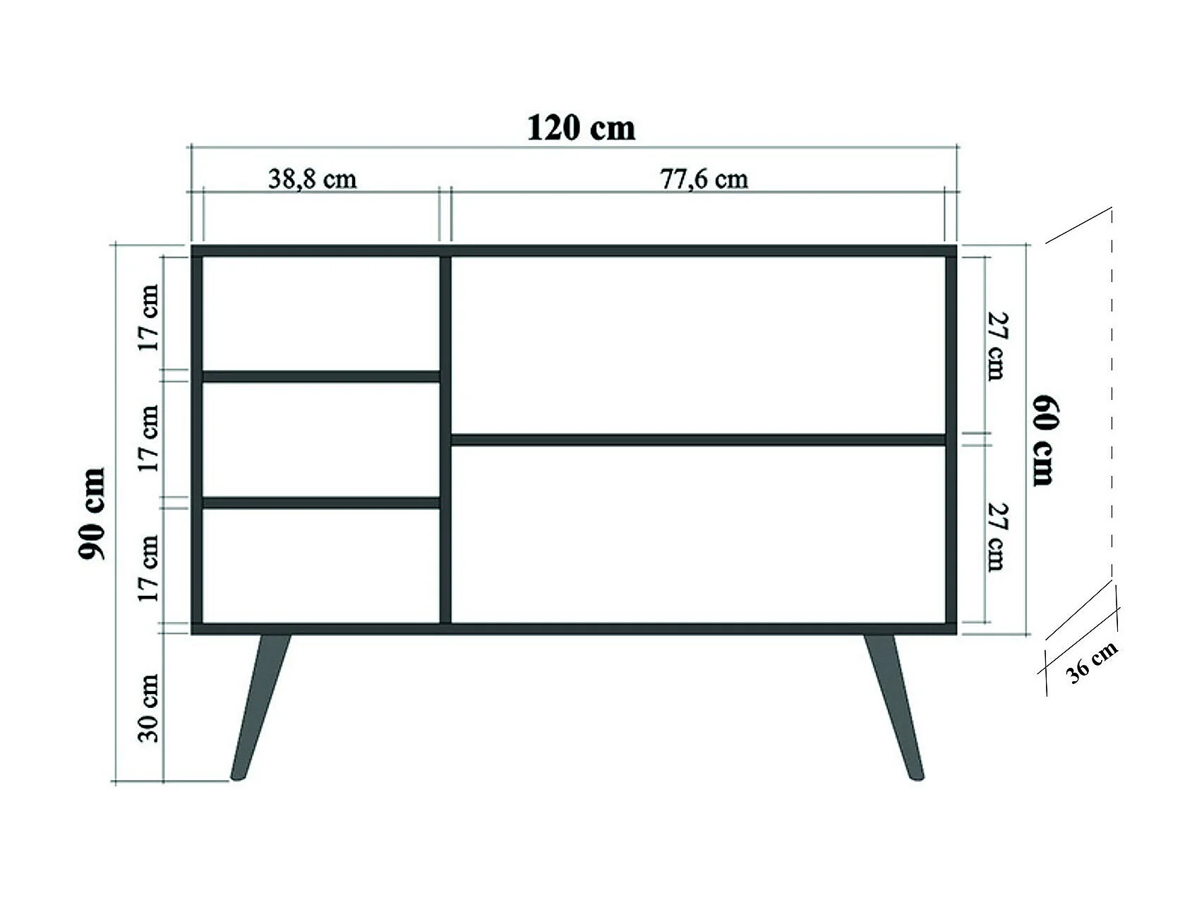 Buffet 3 portes Repono 120x90cm Bois Multicolore