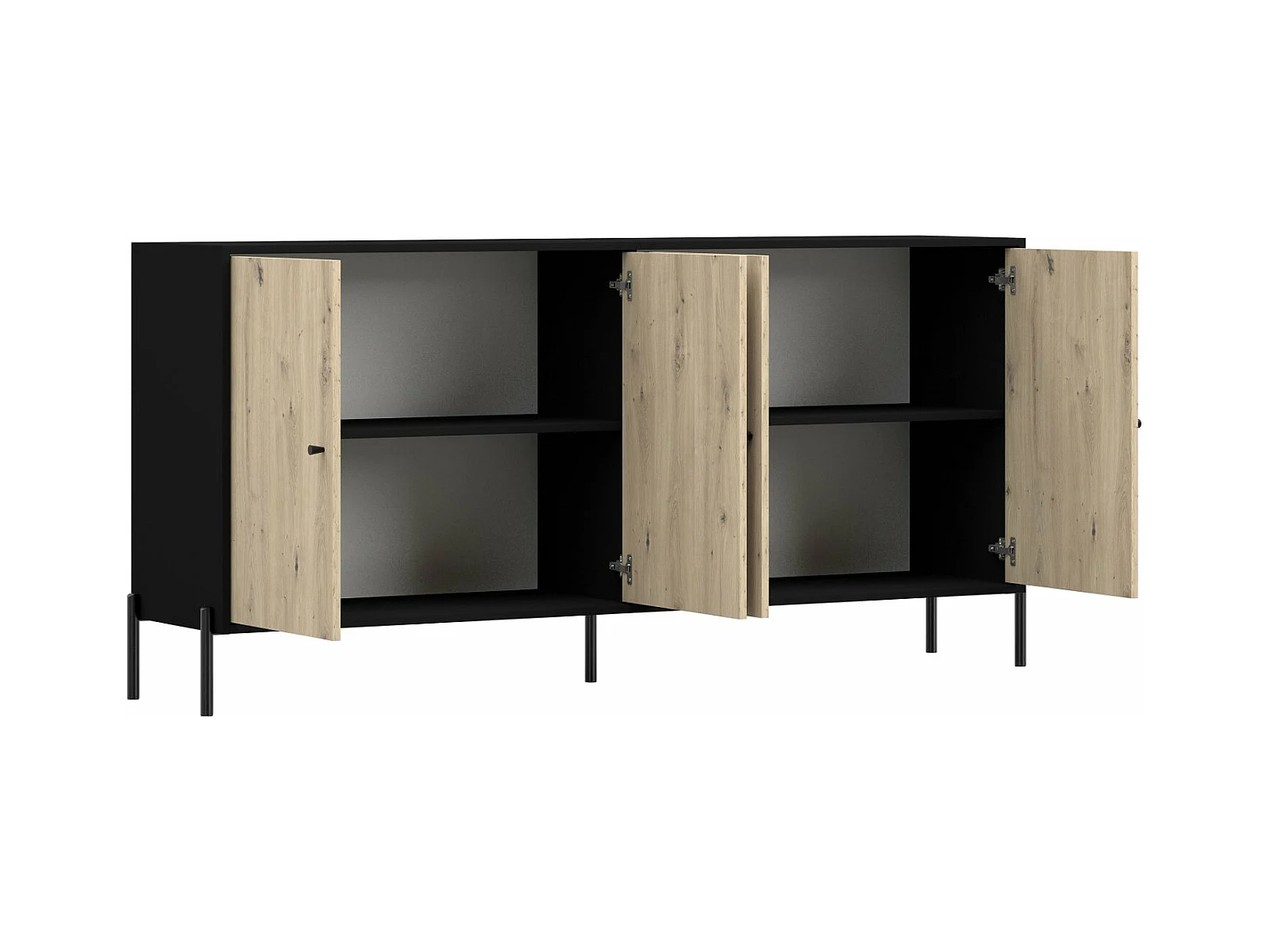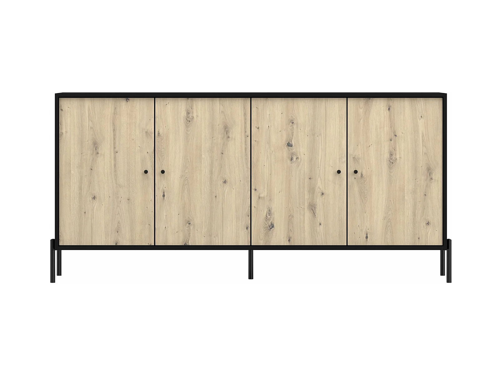Buffet 4 portes - 200 cm - noir/aspect chêne artisan - RAVIERO