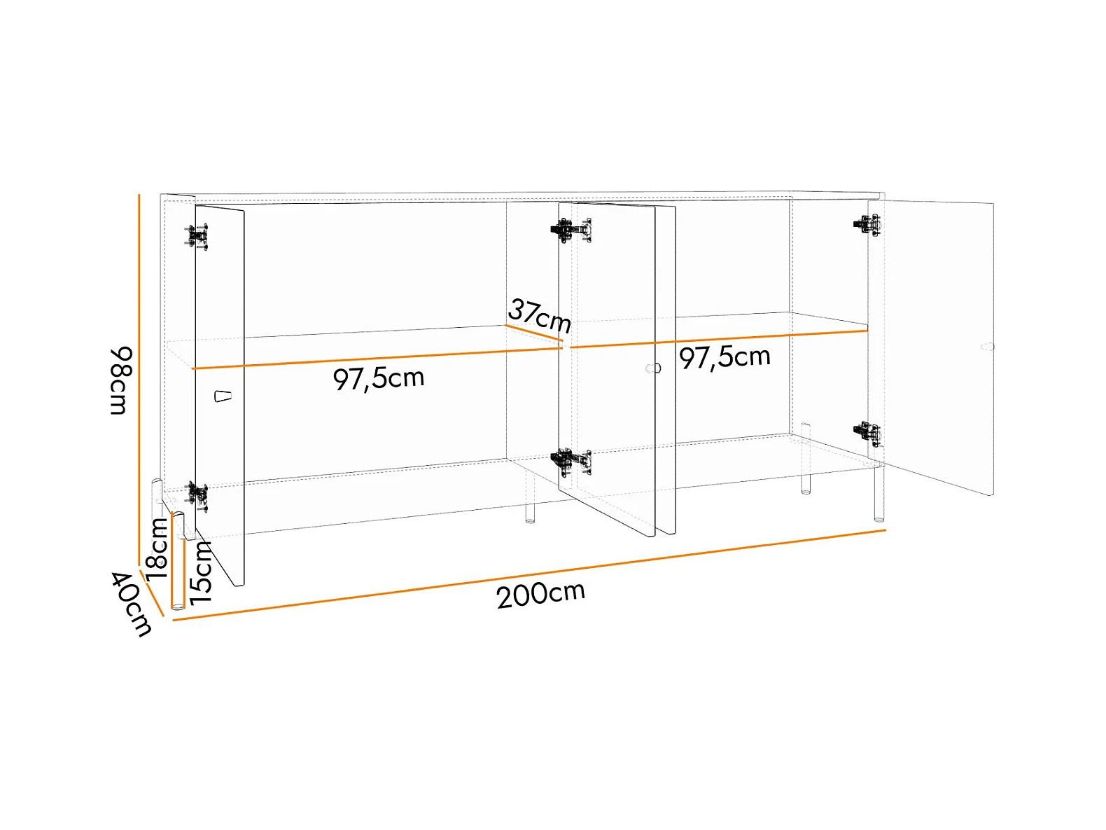 Buffet - 168 cm - 2 portes avec trois tiroirs - noir avec pieds noirs - ZOVA