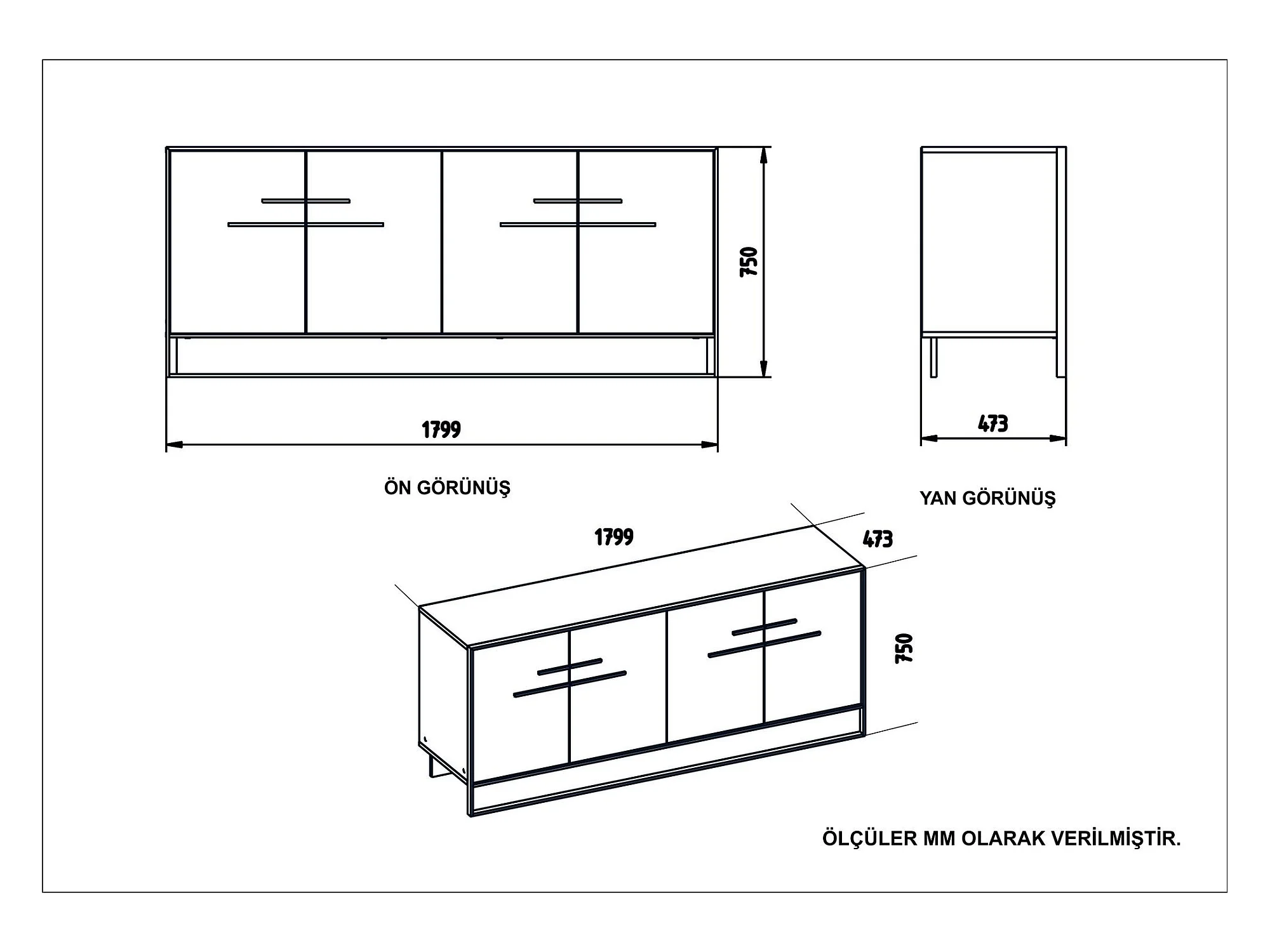Buffet 4 portes L180 cm - MILAN