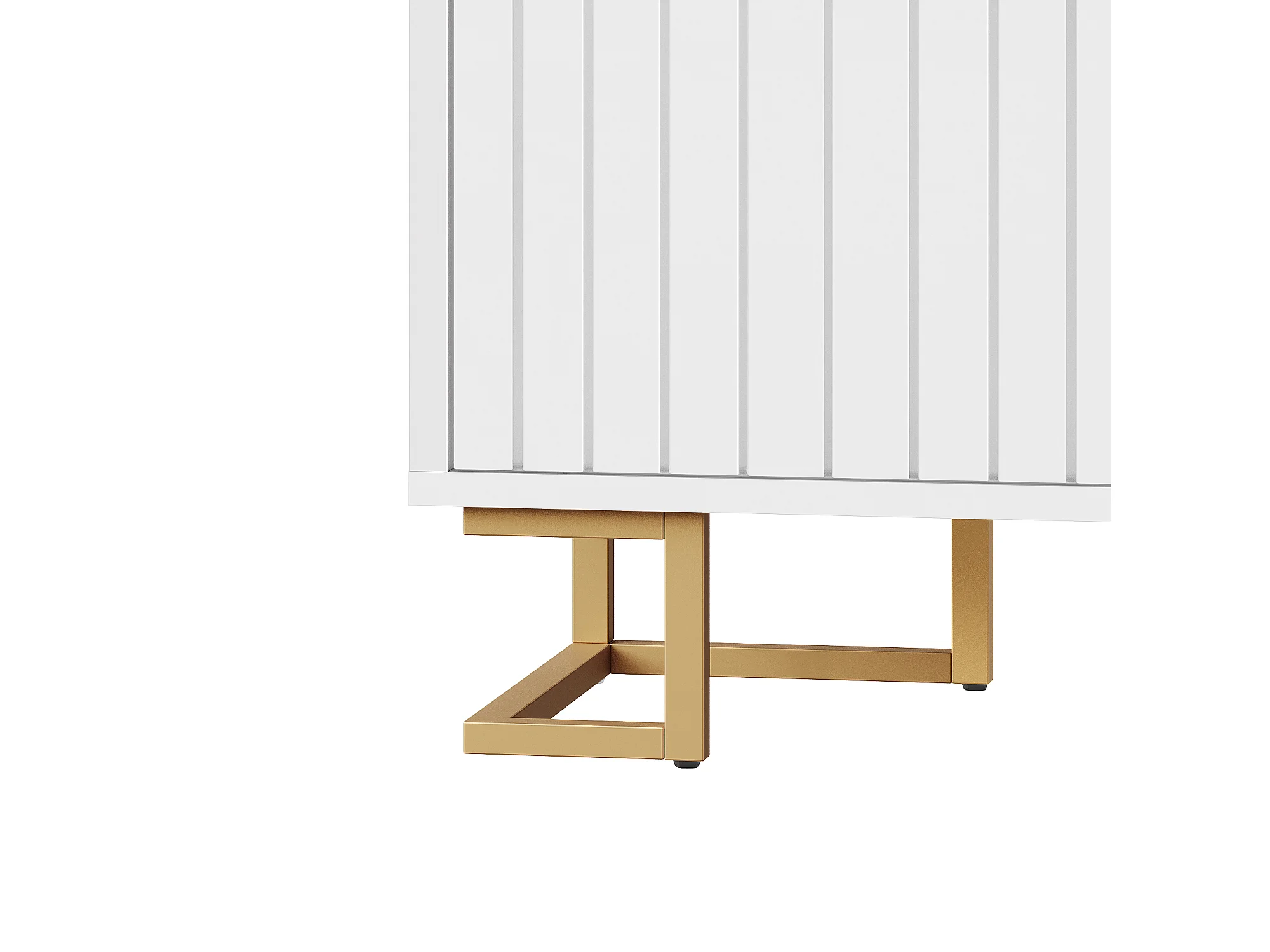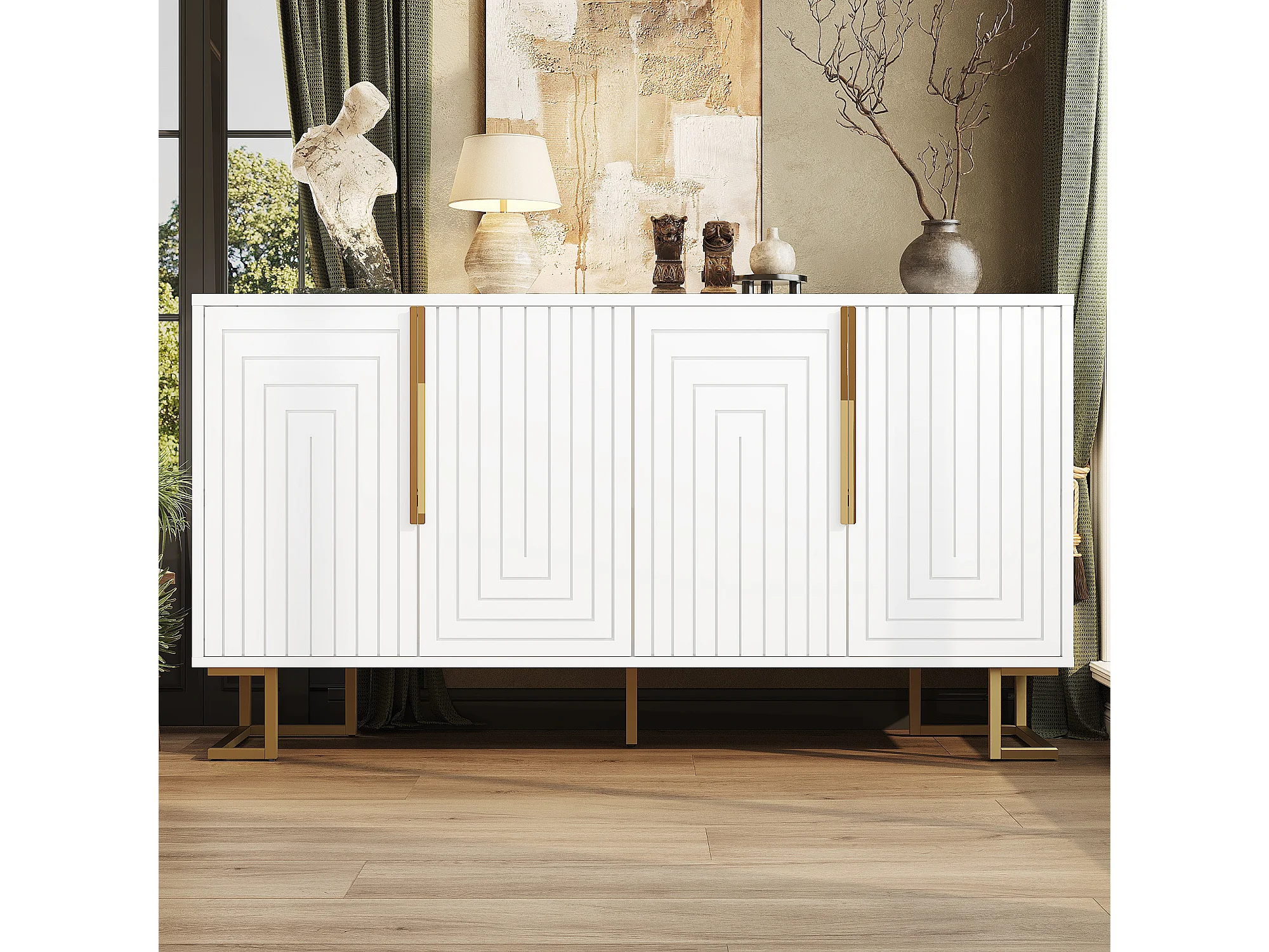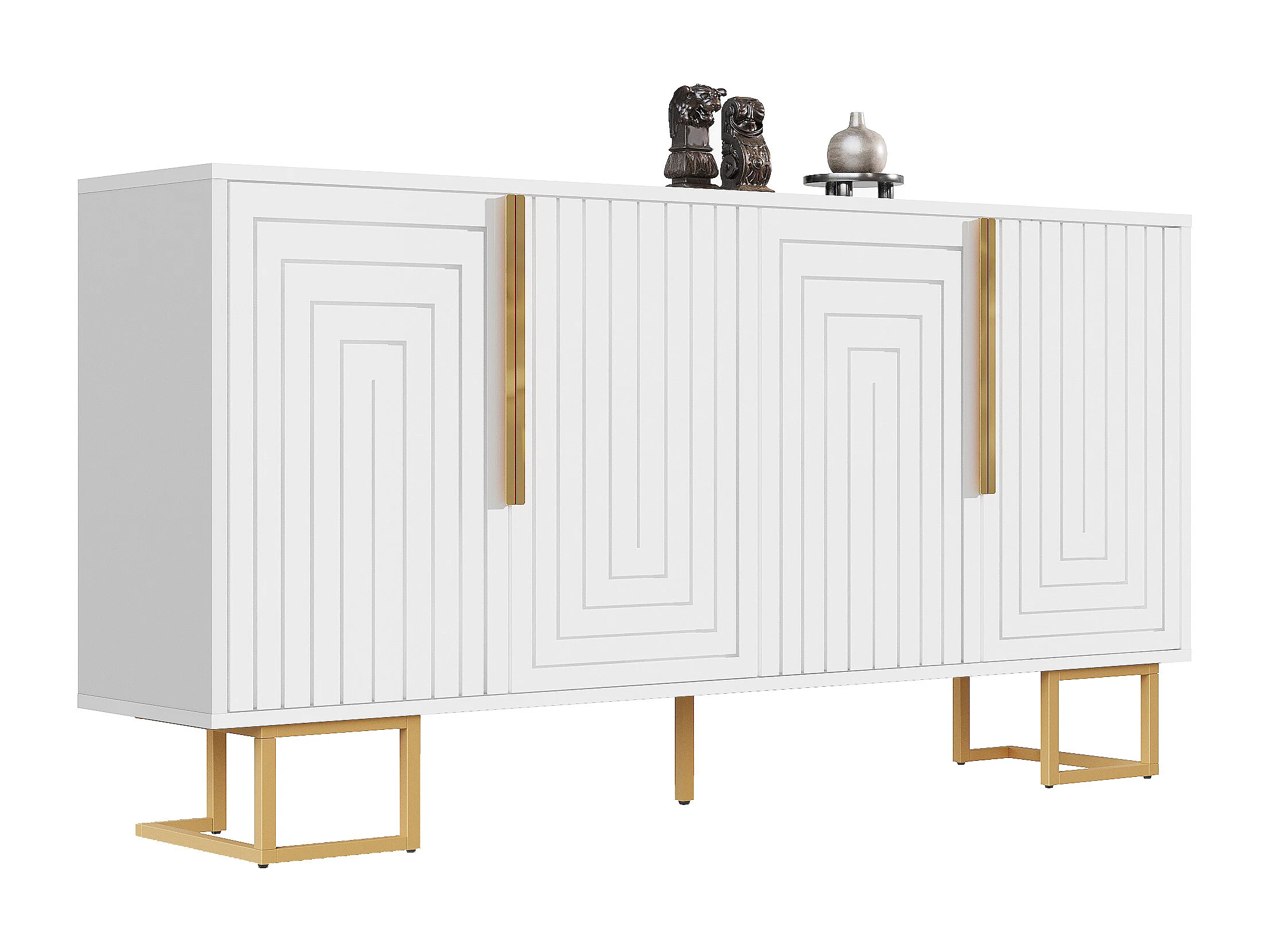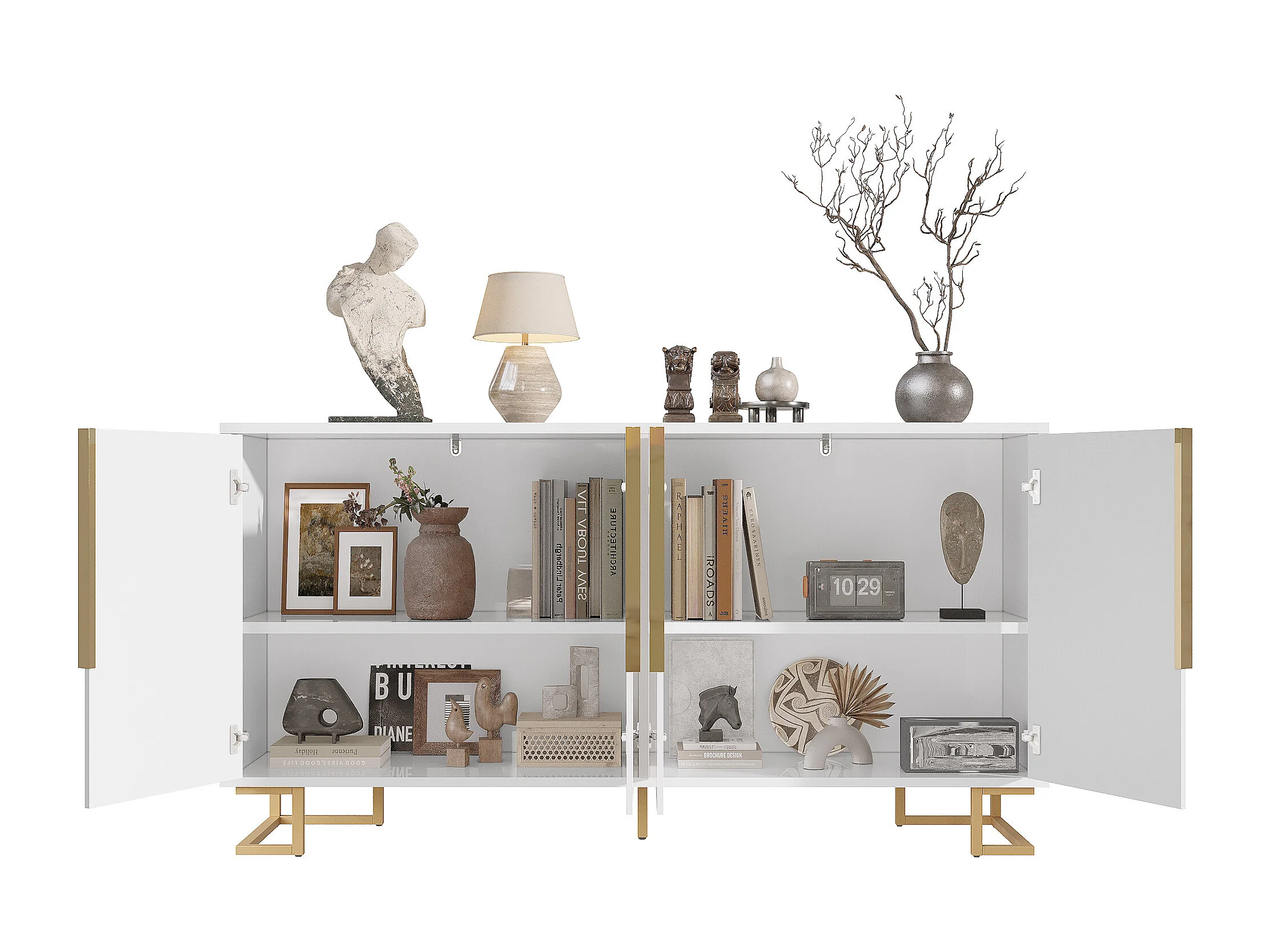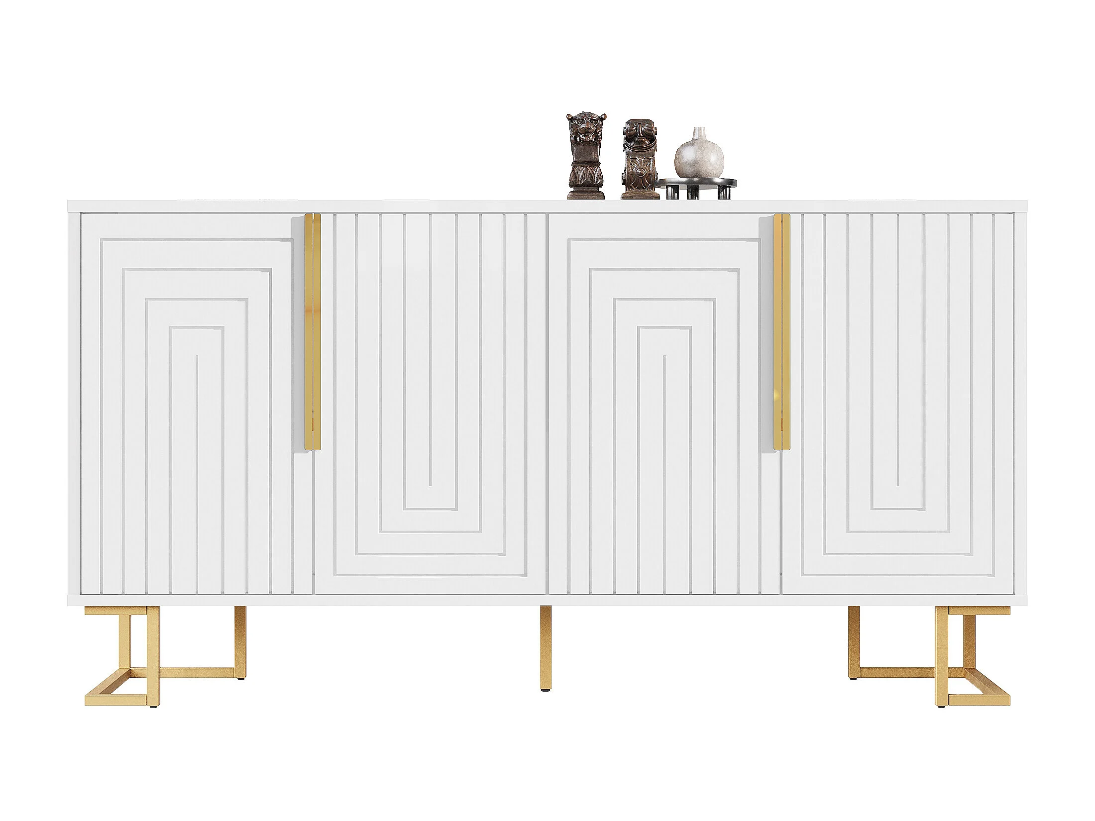 Buffet 4 portes - Buffet avec poignées et pieds dorés - blanc - pour salle à manger
