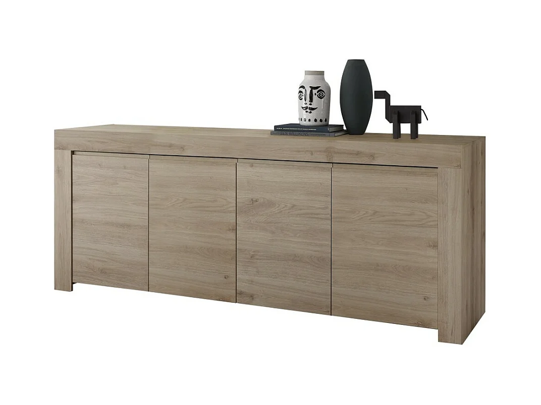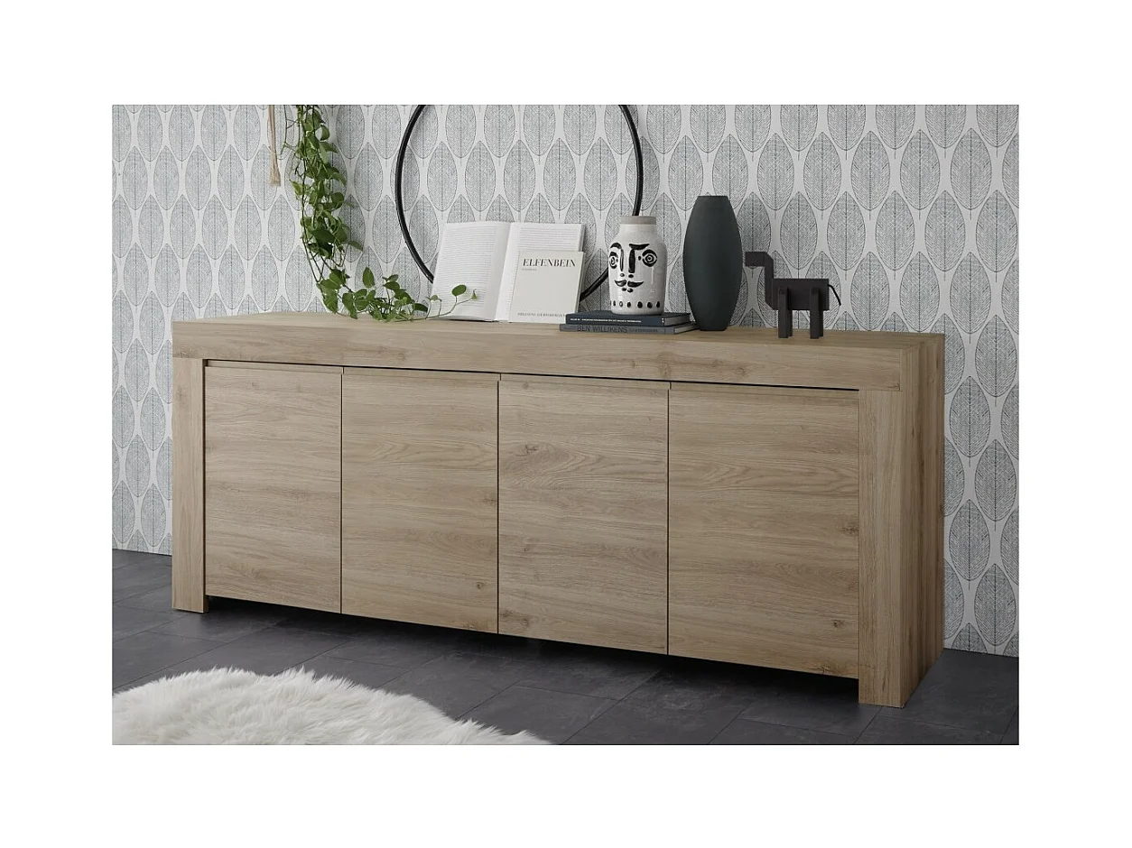Buffet 4 portes en bois, collection ZEFIR, coloris chêne clair, parfait pour votre salon