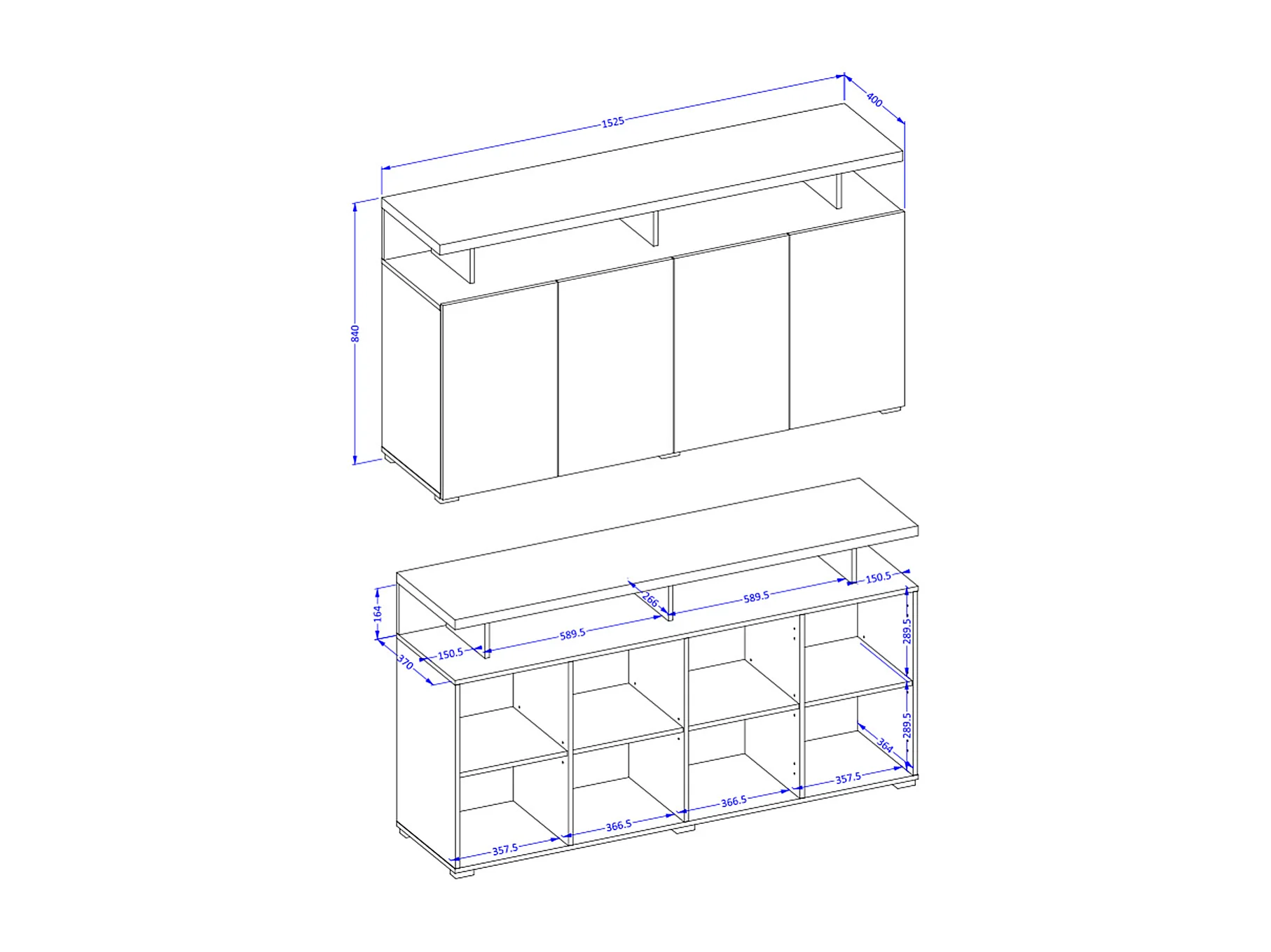 Buffet 4 portes Opio Taupe et Anthracite