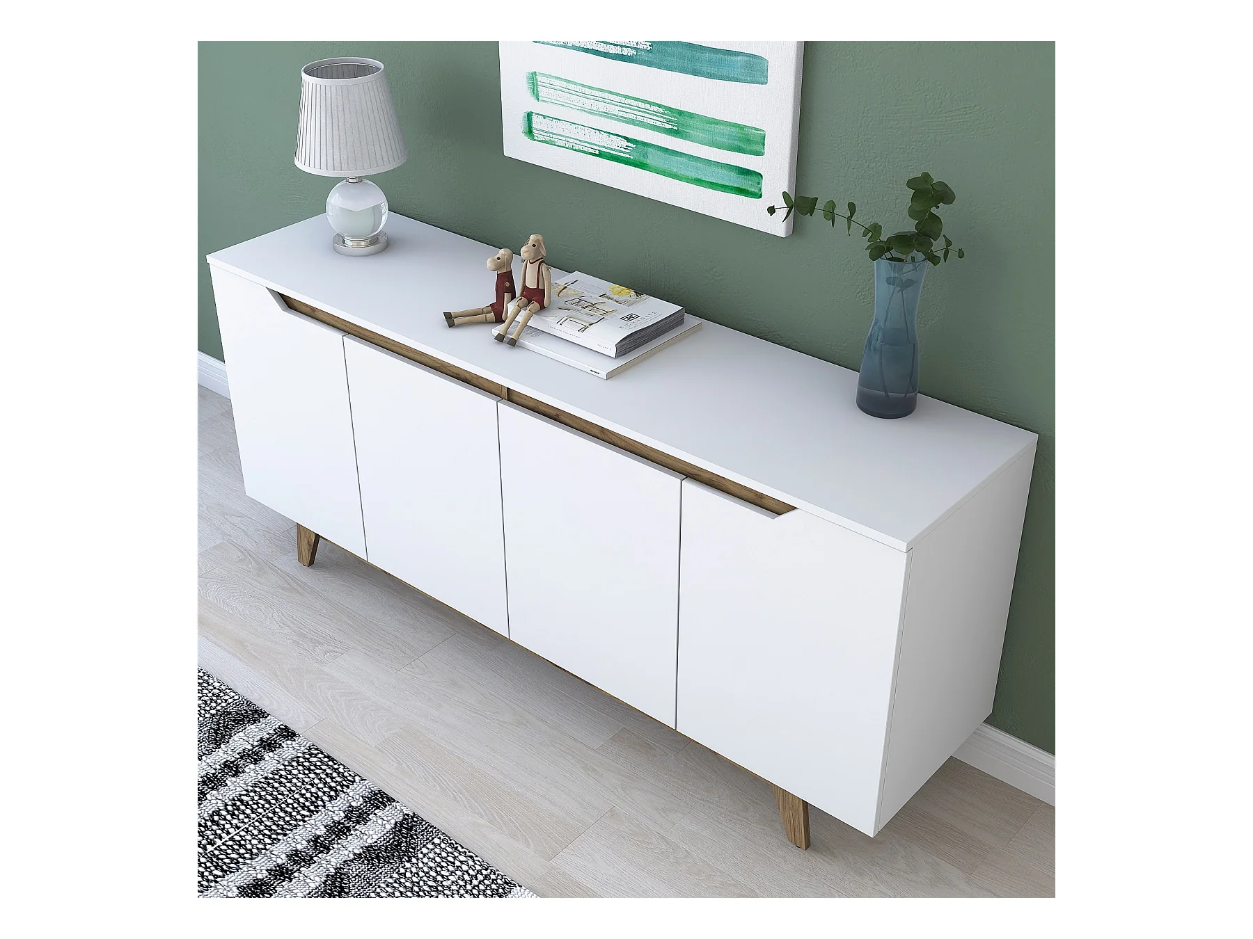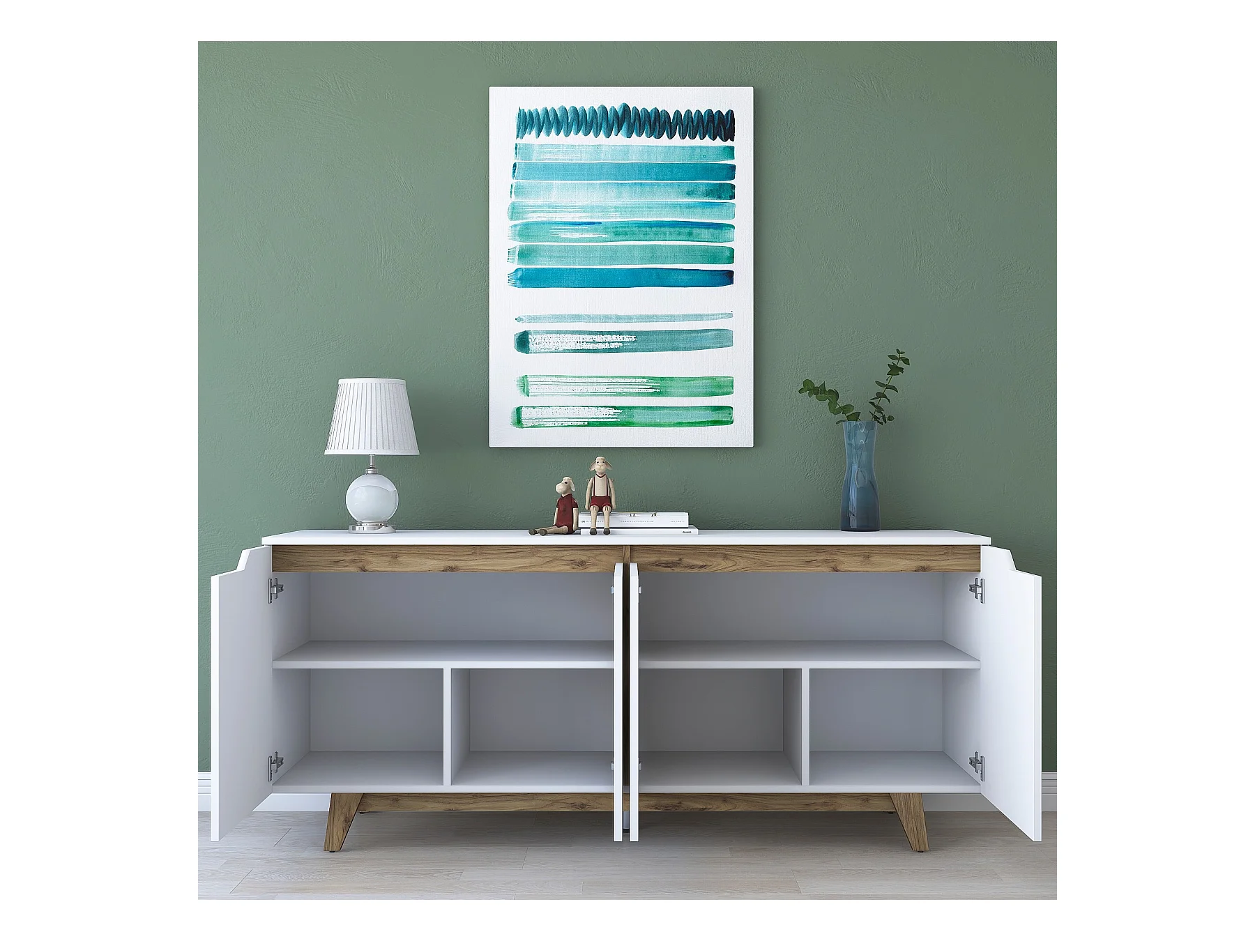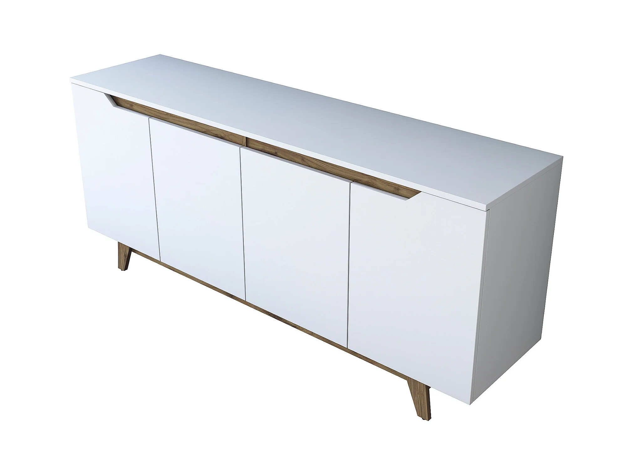 Buffet 4 portes Targita 180x78,6cm Bois Naturel et Blanc