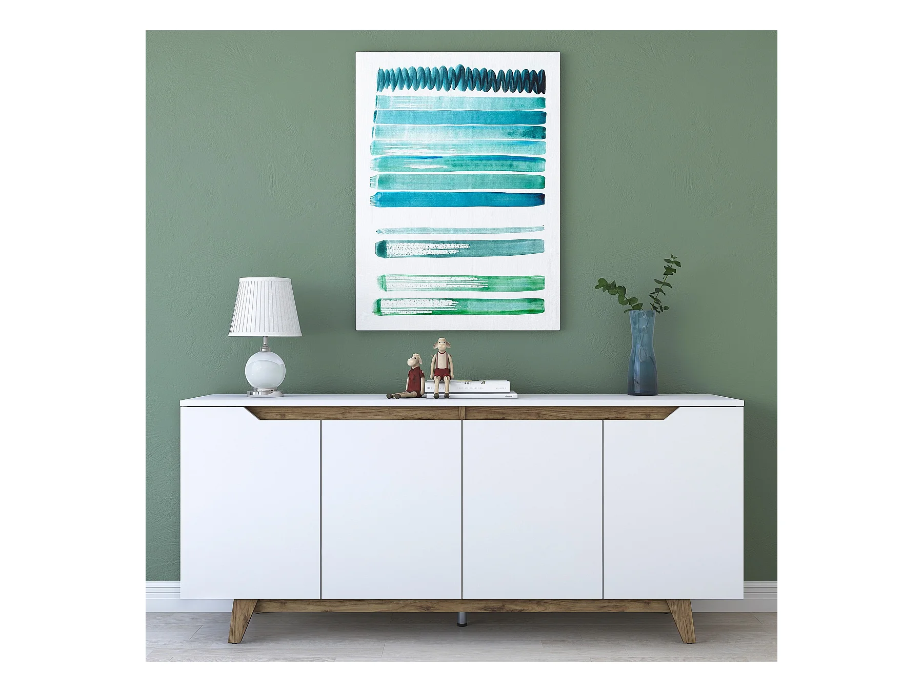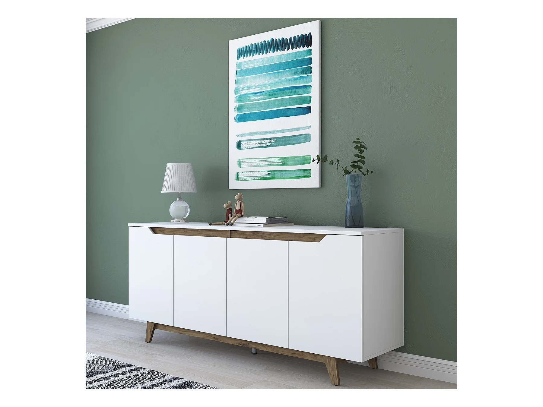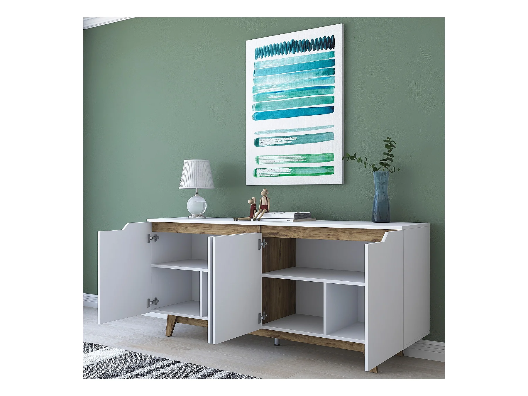 Buffet 4 portes Targita 180x78,6cm Bois Naturel et Blanc