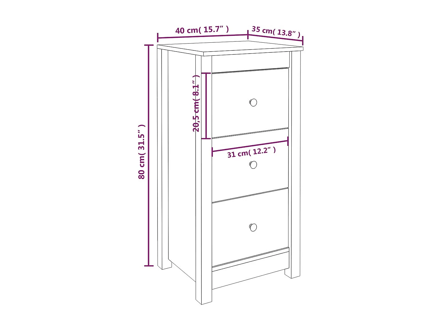Buffet 40x35x80 cm bois massif de pin