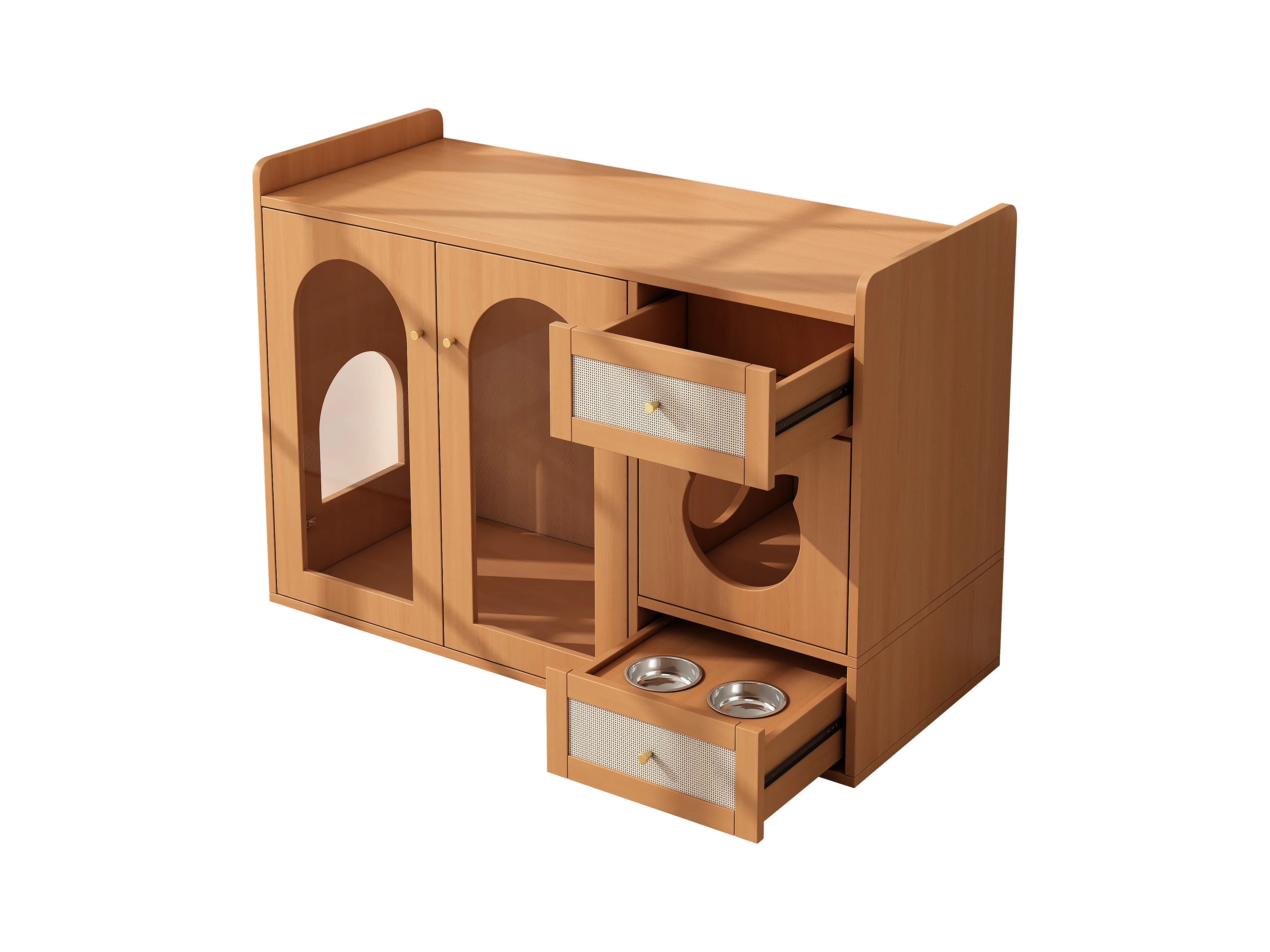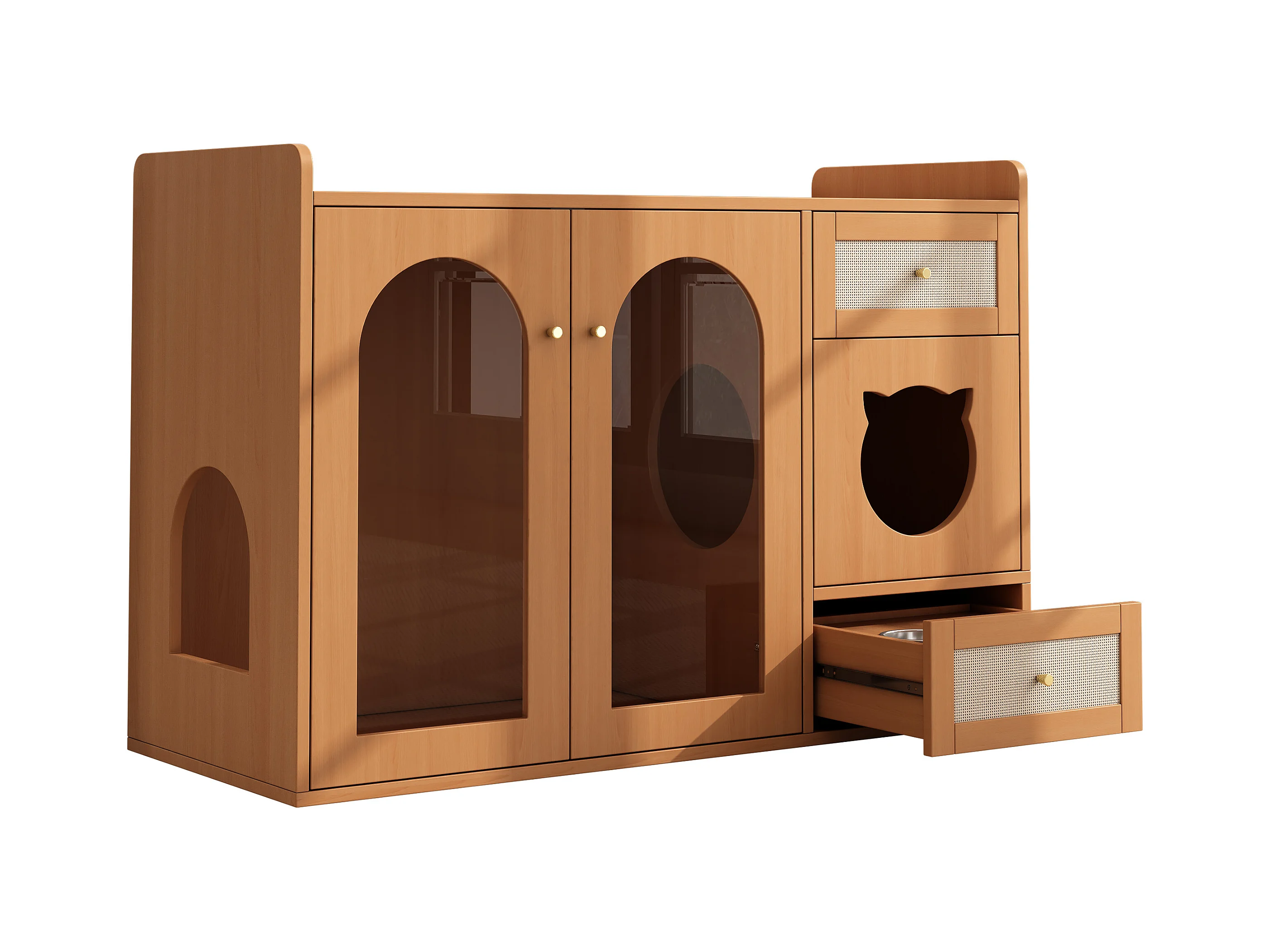 Buffet à roulettes - 100 x 45 x 66 cm - avec bac à sable amovible + isolation des odeurs - MDF - naturel