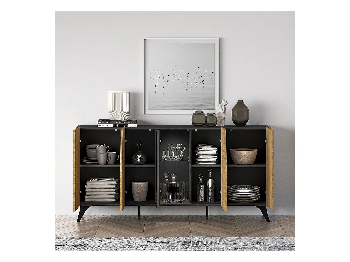 Buffet 2 portes 4 tiroirs Ysia Bois et Noir