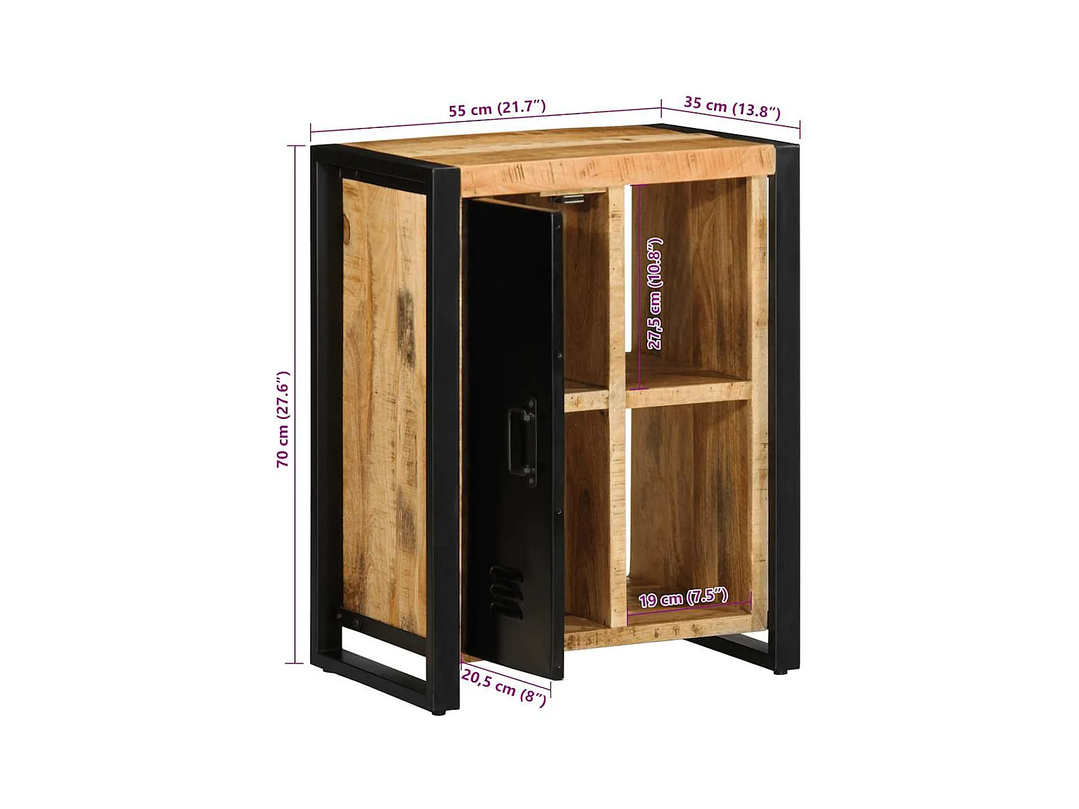 Buffet 55x35x70 cm bois de manguier brut massif