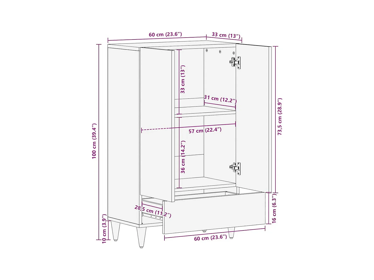 Buffet 60x33x100 cm bois de manguier massif